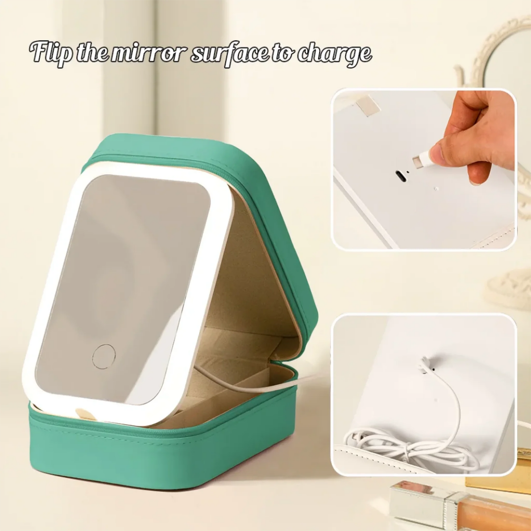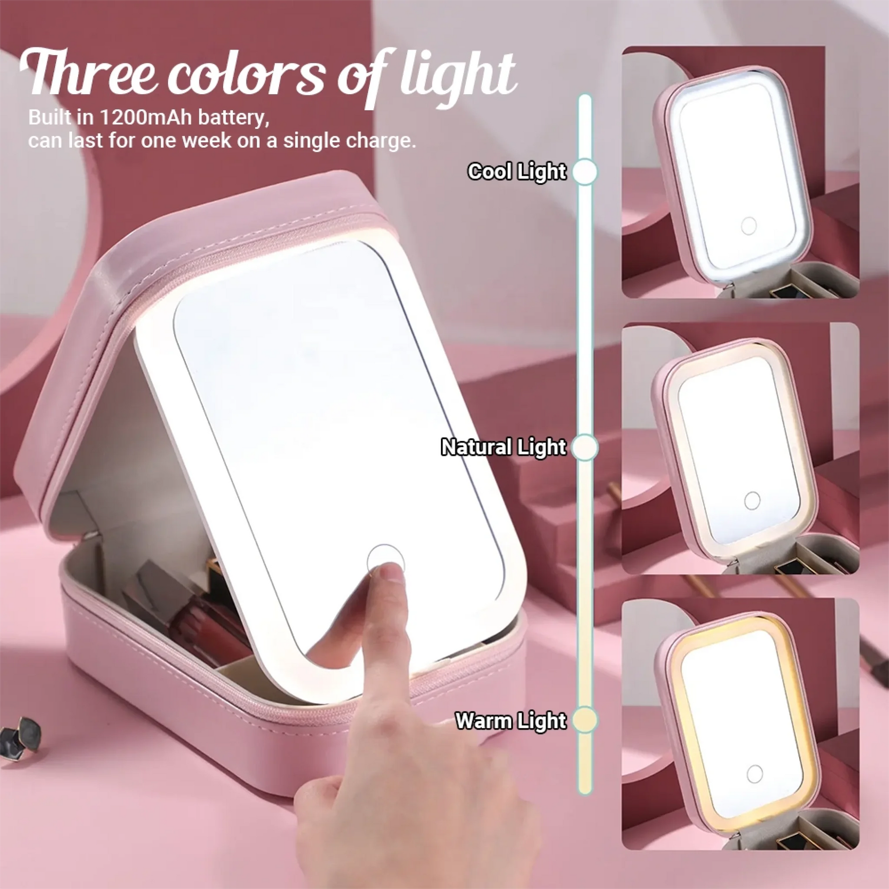 The LED mirror in the makeup box has three adjustable lighting modes: cool light, natural light, and warm light. This allows you to create the perfect lighting for your makeup application, no matter where you are. The touch switch makes it easy to change the lighting mode, giving you control over your makeup experience.