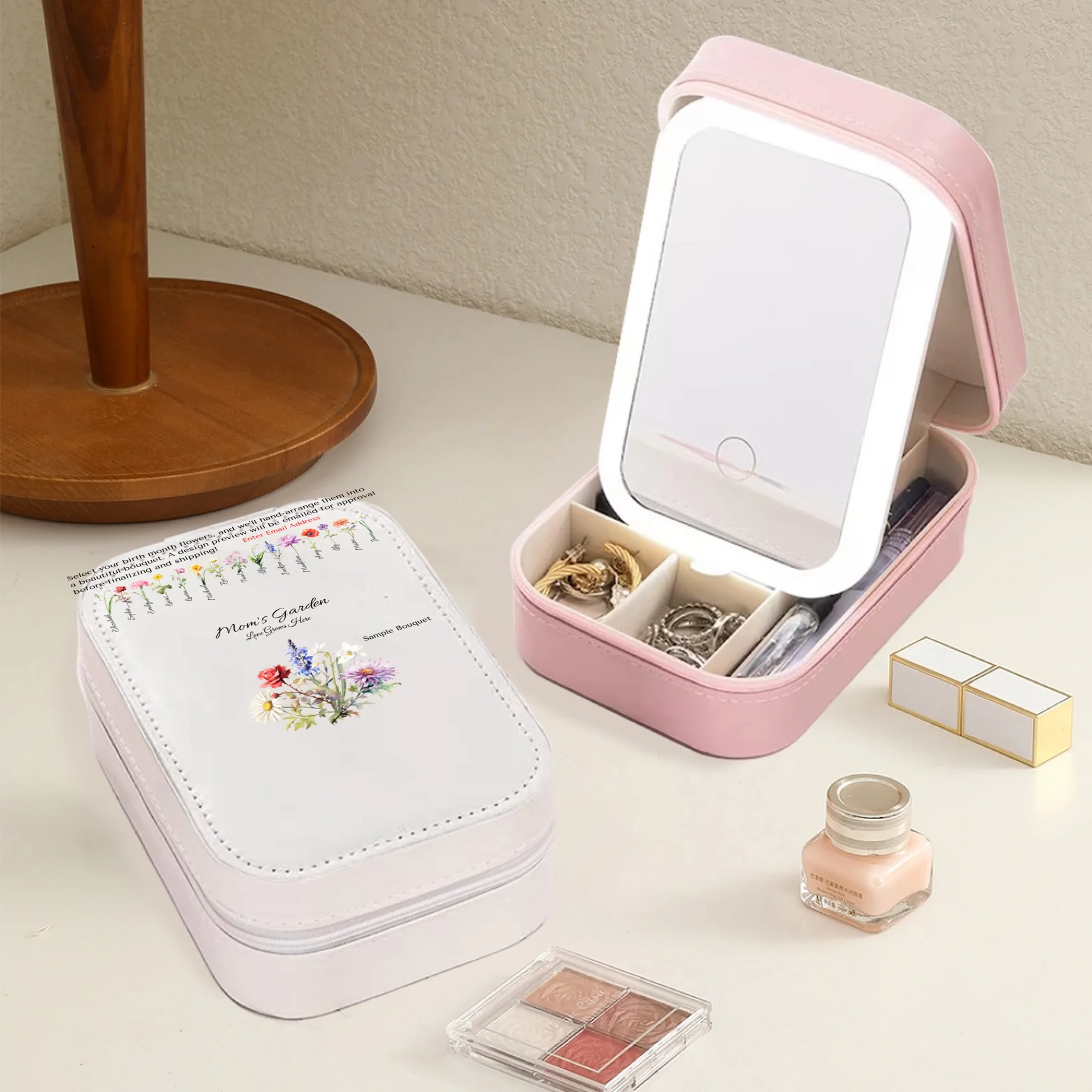 LED Makeup Box with Custom Watercolor Birth Month Flower Bouquet – Personalized Beauty Meets Function