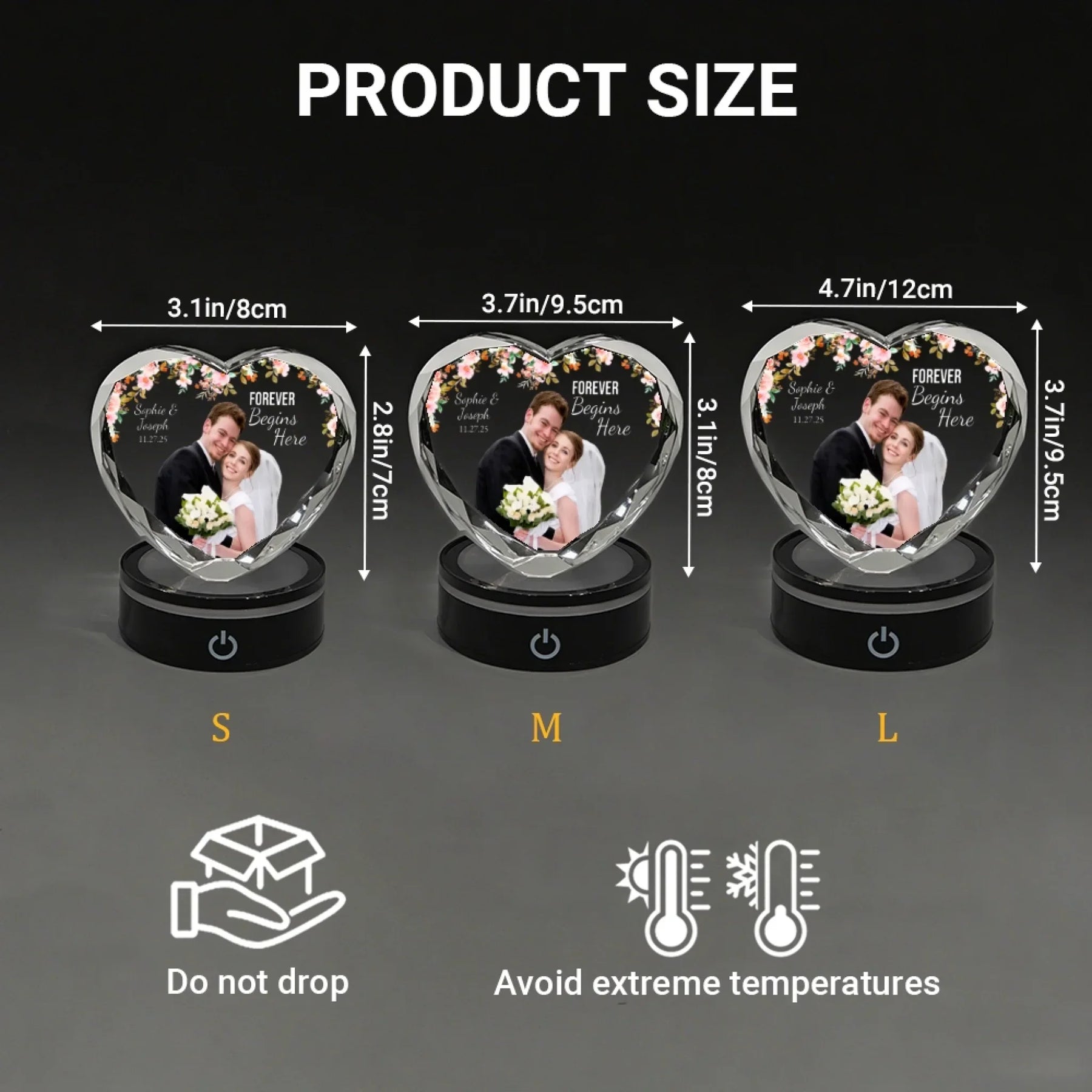 Perfect for romantic occasions, milestone celebrations, or meaningful décor, this crystal heart transforms your favorite photo into a timeless display of love and elegance — now beautifully illuminated with a radiant LED base that brings your image to life.