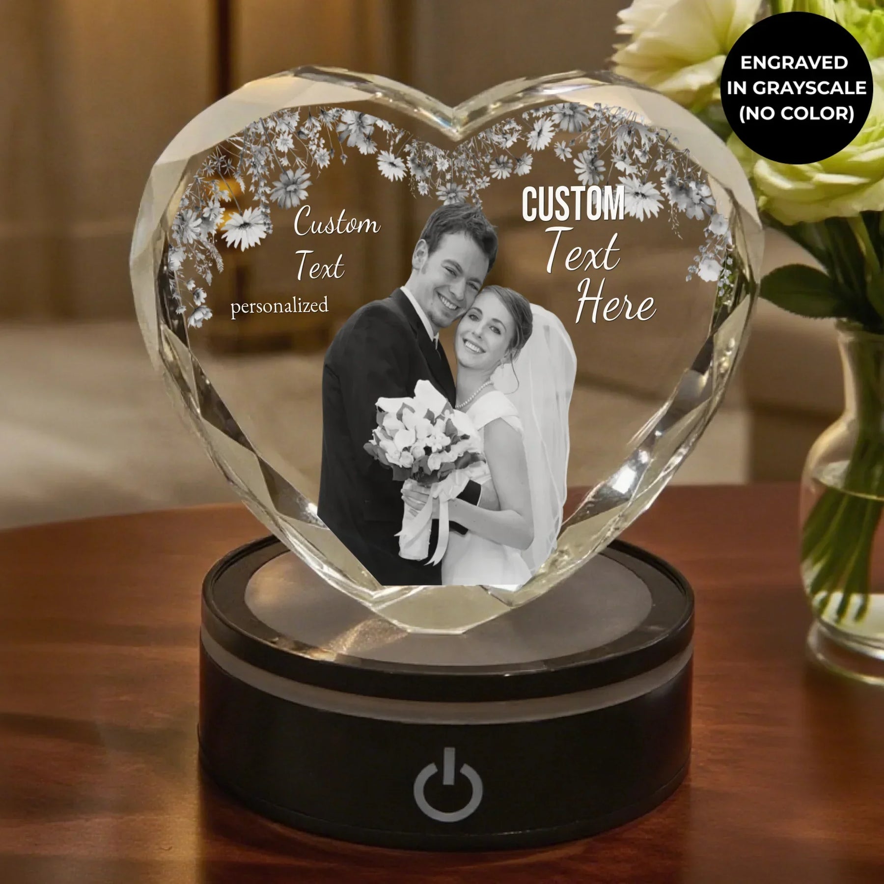 Celebrate your forever with the Heart Lace Wedding Crystal, a luminous keepsake that captures your love story in timeless elegance. Crafted from premium optical crystal and illuminated by an LED base, this exquisite heart-shaped design turns your favorite wedding photo into a radiant work of art.