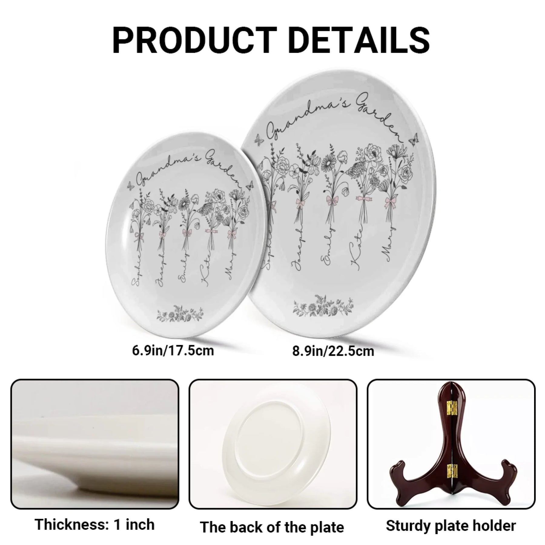 The Coquette Birth Month Flowers Plate with Stand brings together classic floral beauty and modern personalization.