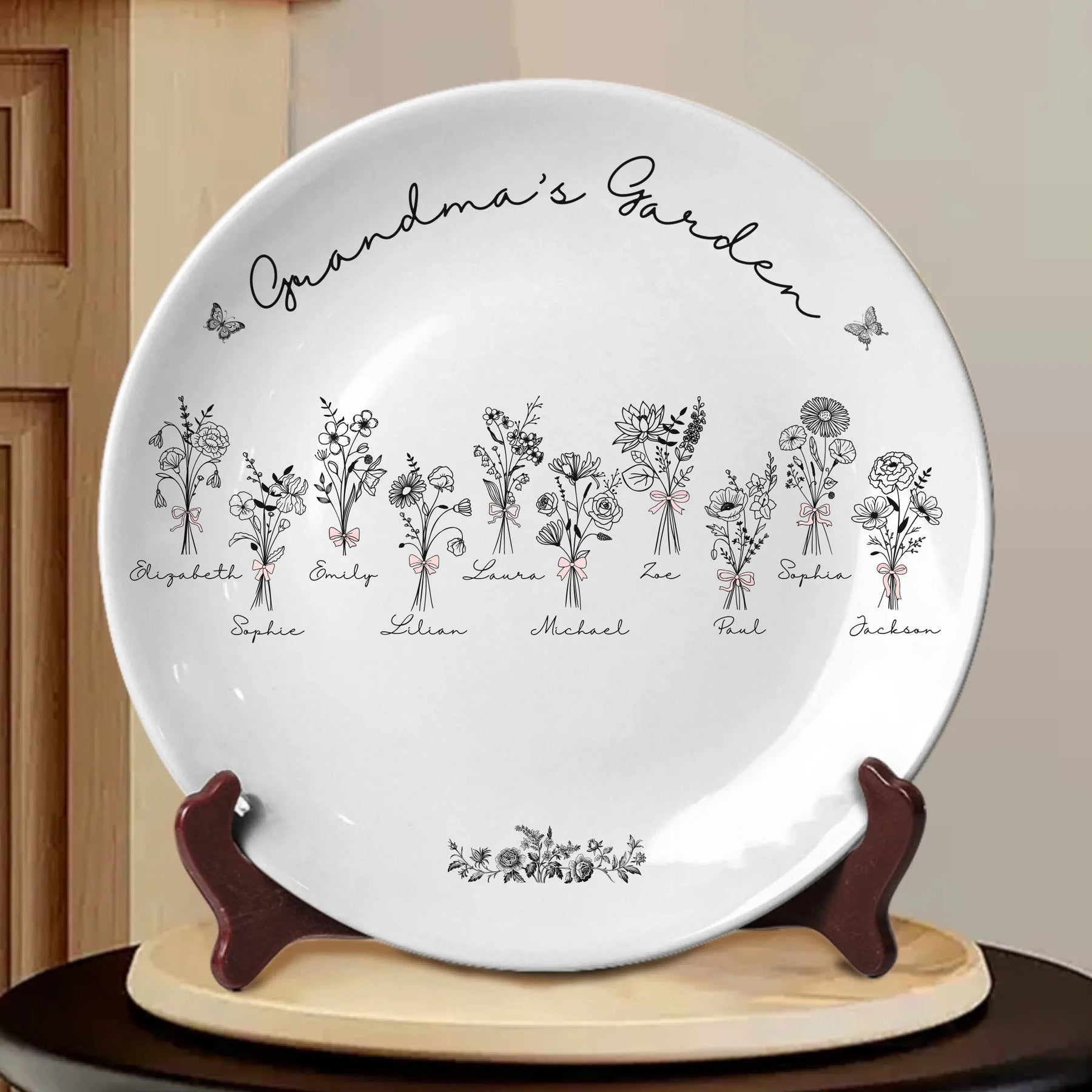 Custom Coquette Birth Flowers Ceramic Plate (with Stand)