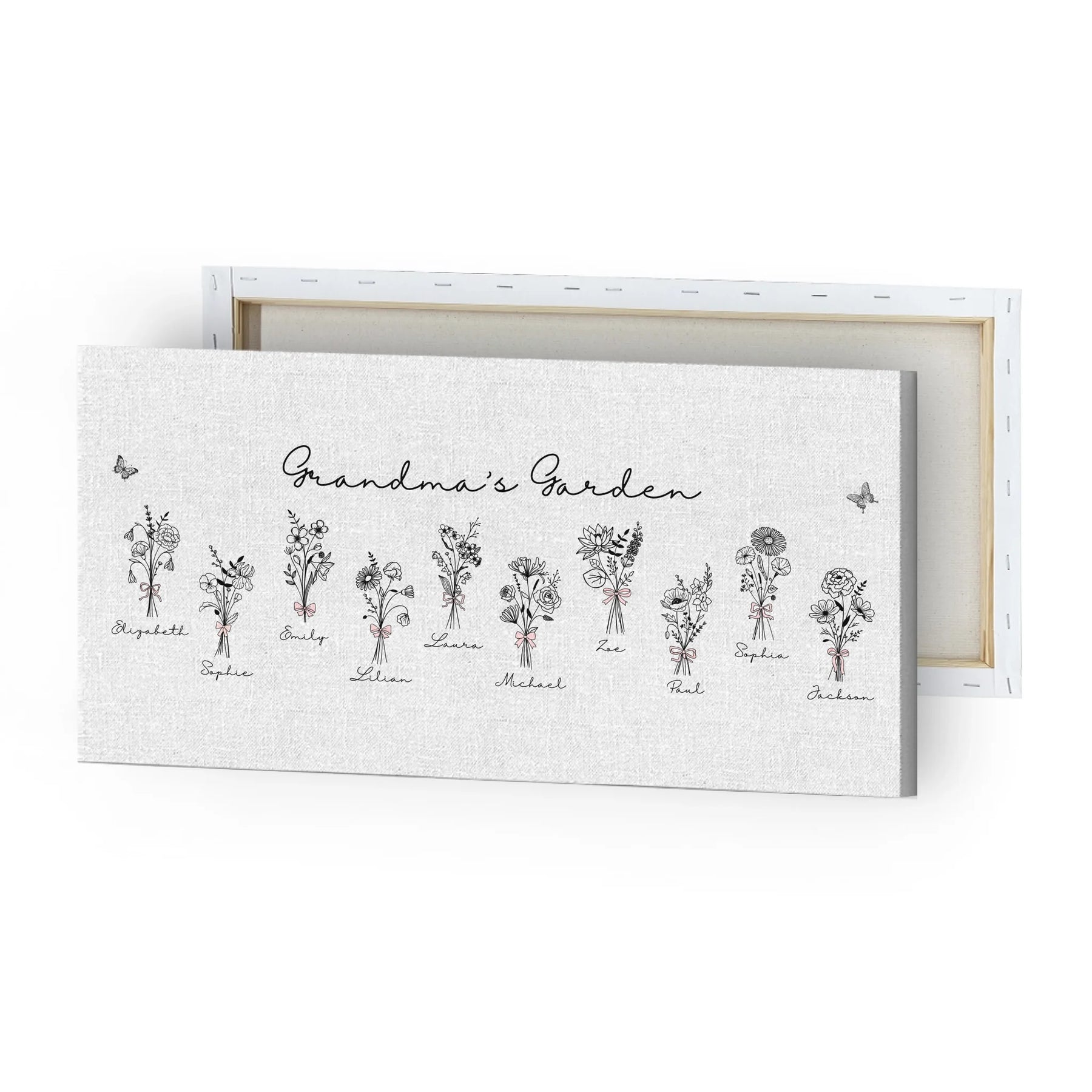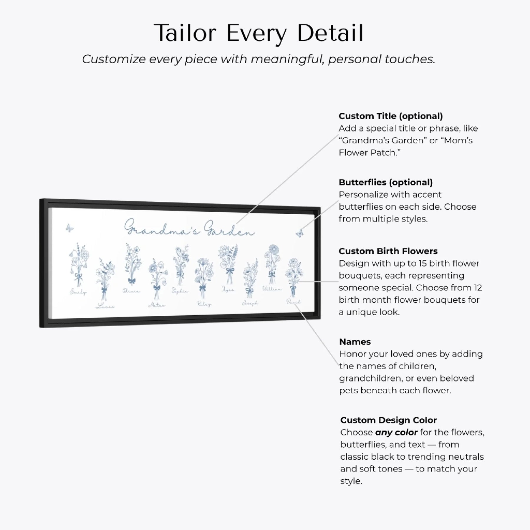 Include a custom title, such as “Grandma’s Garden” or “Mom’s Flower Patch,” to make your piece truly one of a kind.