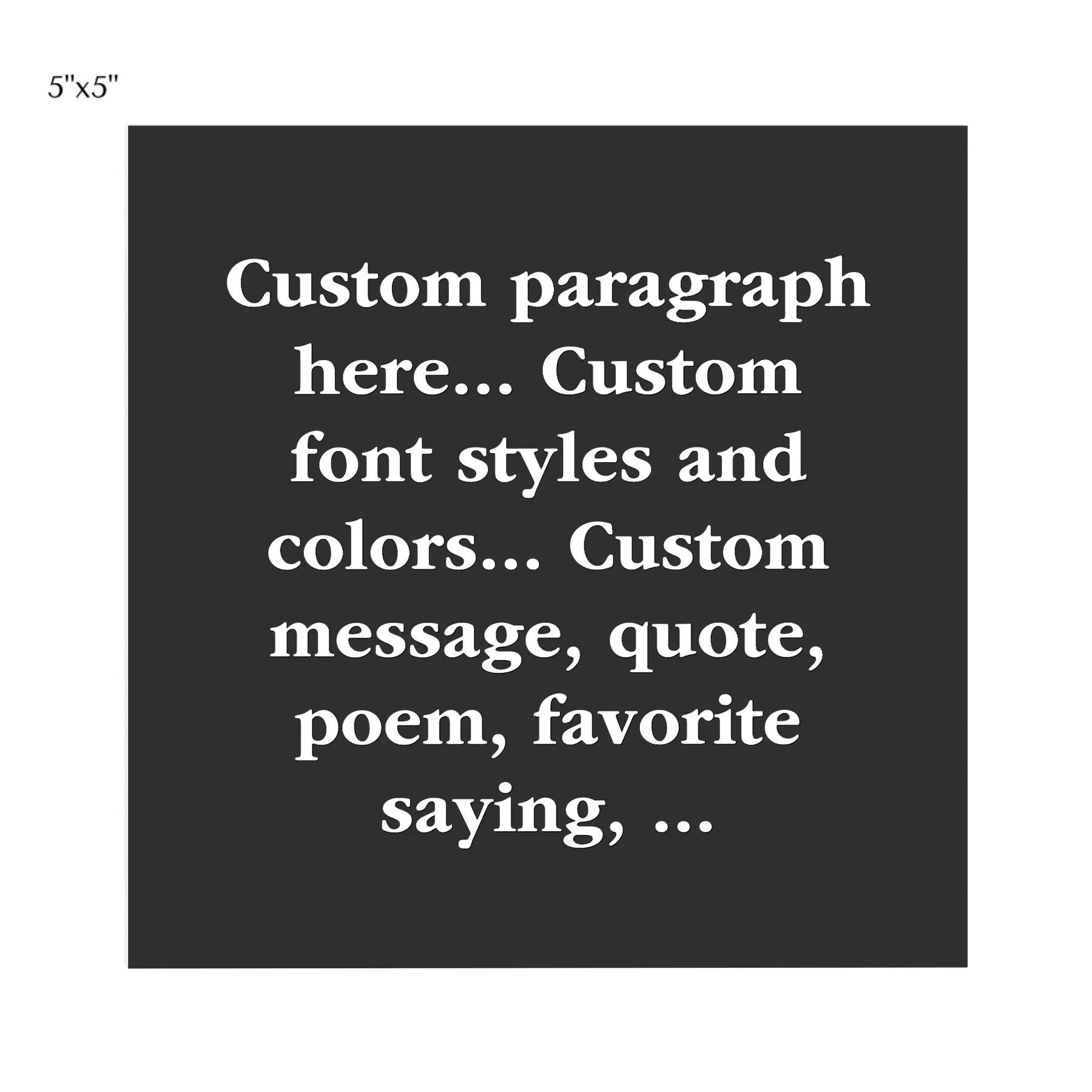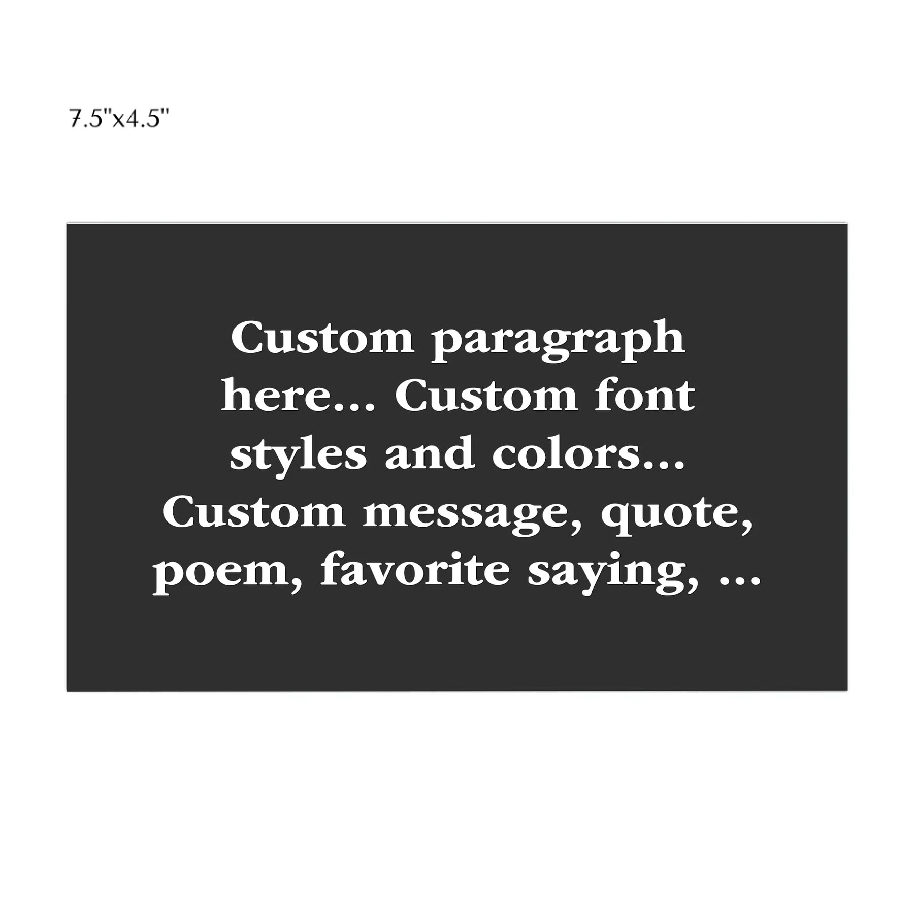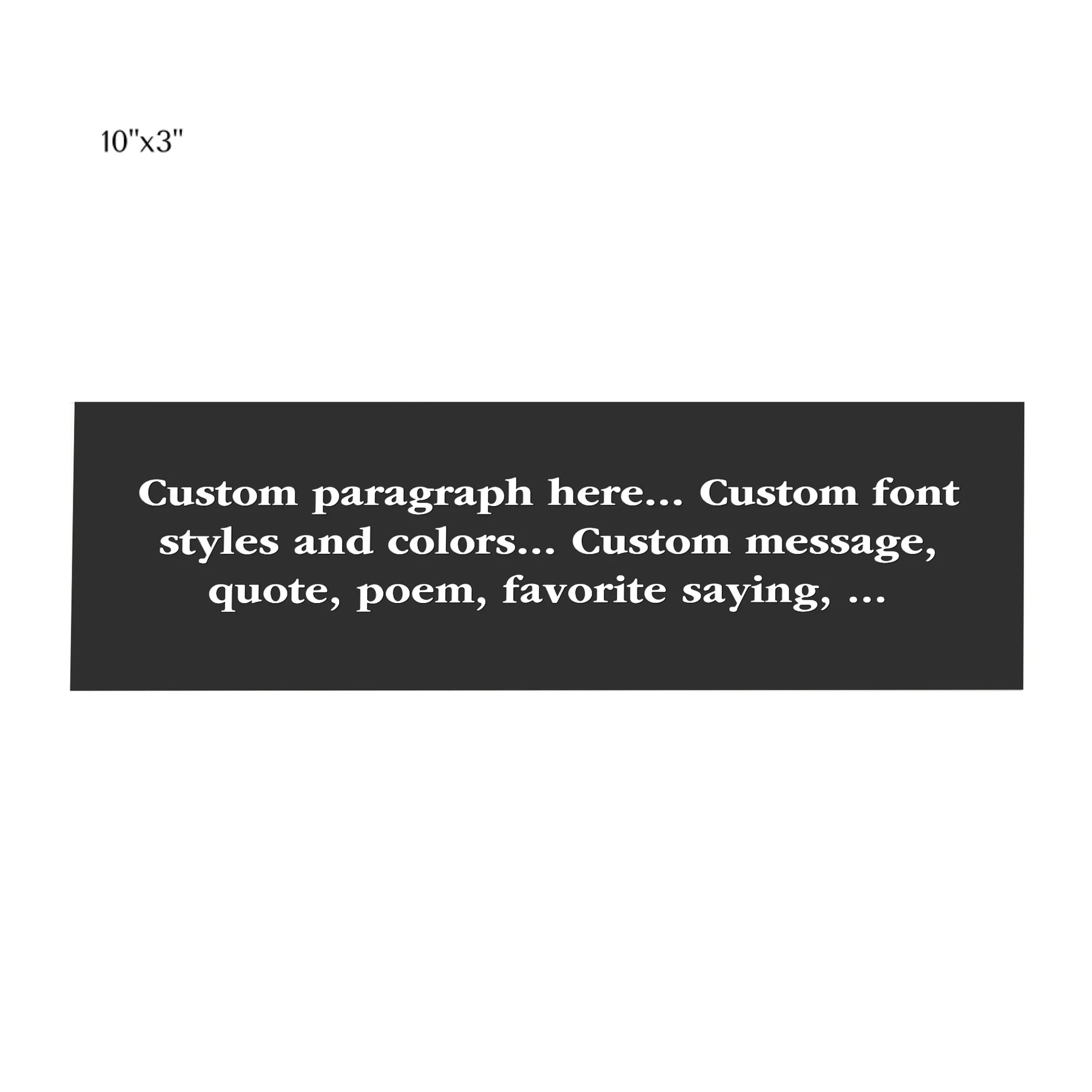 Transform your car with our Custom Paragraph Car Accessories collection. Whether you want to add a personal touch or give a thoughtful gift, our accessories let you express your unique style. From personalized license plates to bumper stickers, car floor mats, and air fresheners, each item can be customized with a paragraph of text. Choose a favorite quote, family name, motivational message, or initials to make your car truly yours.