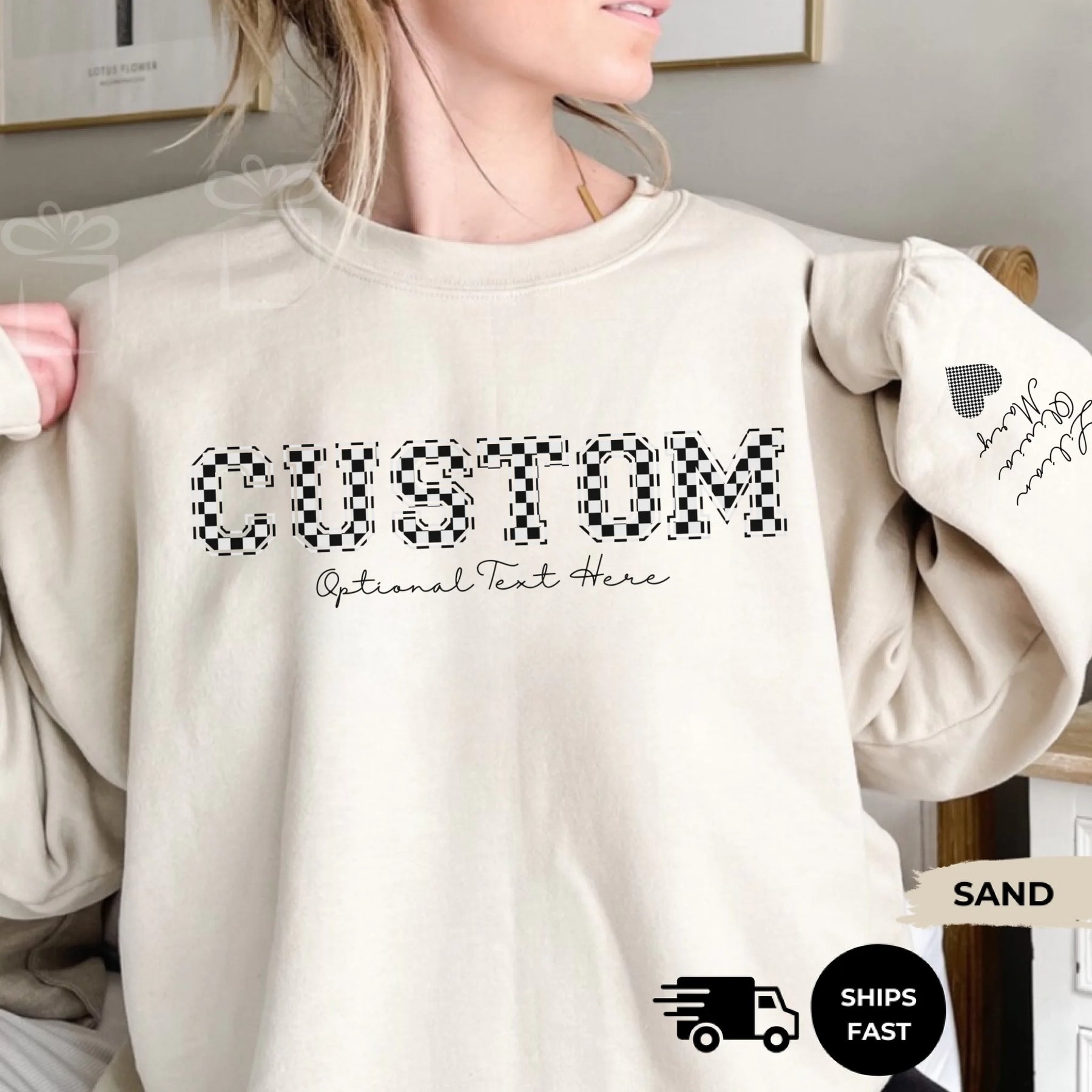 Custom Name Sweatshirt & Hoodie – Checkered Varsity Letters