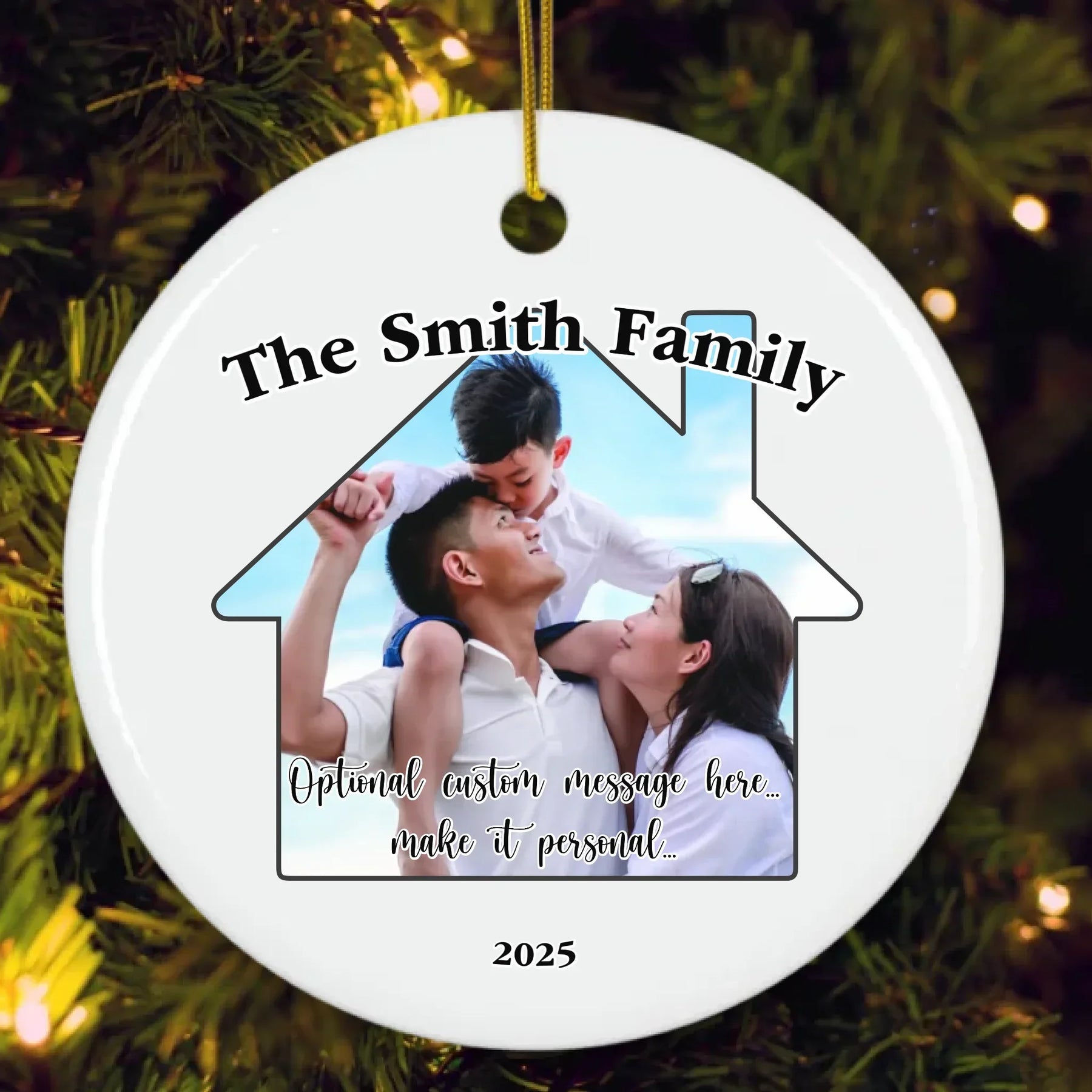 Custom Photo Ornament – Home-Shaped Family Keepsake