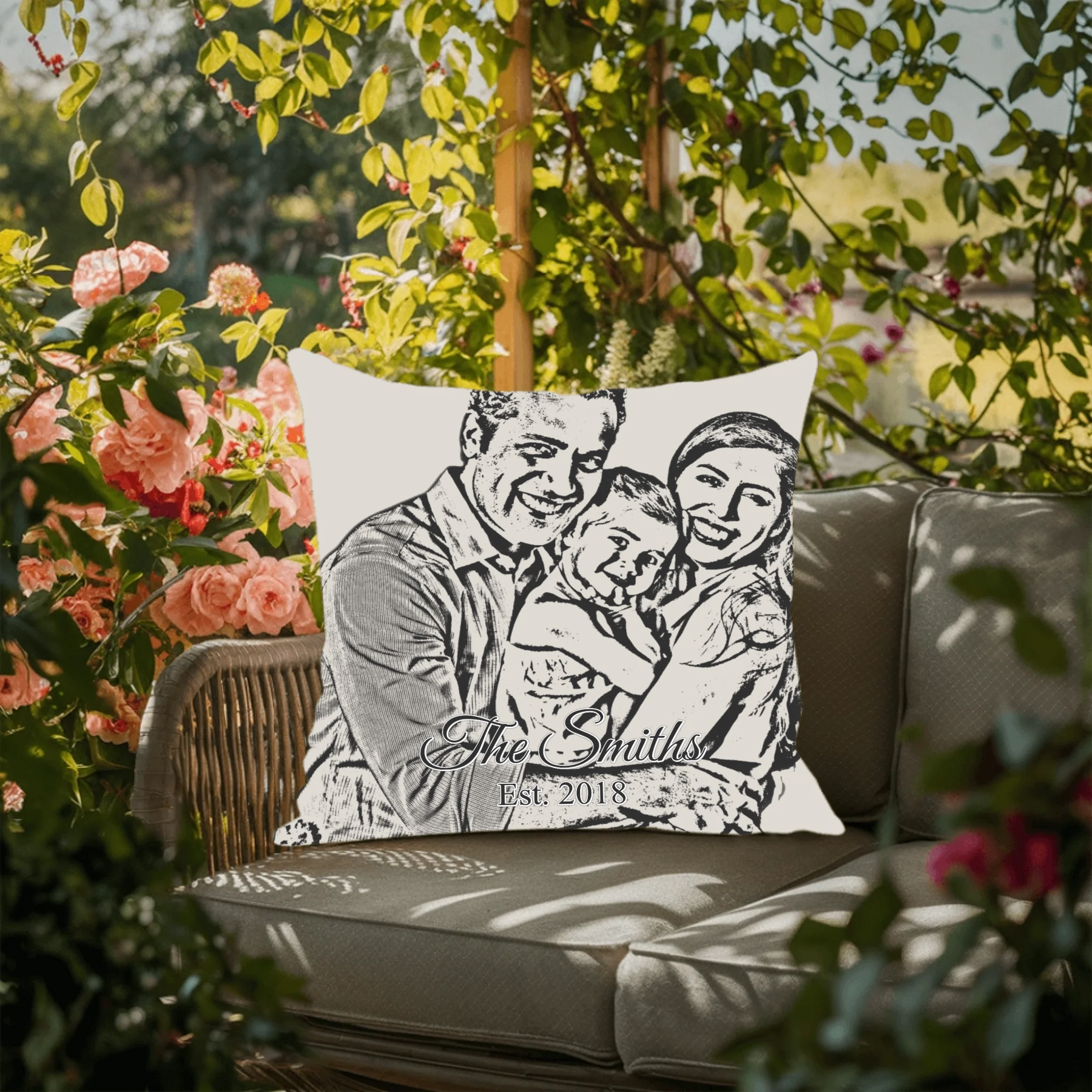 Transform your favorite memories into timeless works of art with custom sketch pillows. Simply upload any photo — our smart design system automatically converts it into a detailed line-art sketch. You can choose your sketch color, reposition your photo, and preview your design before ordering.