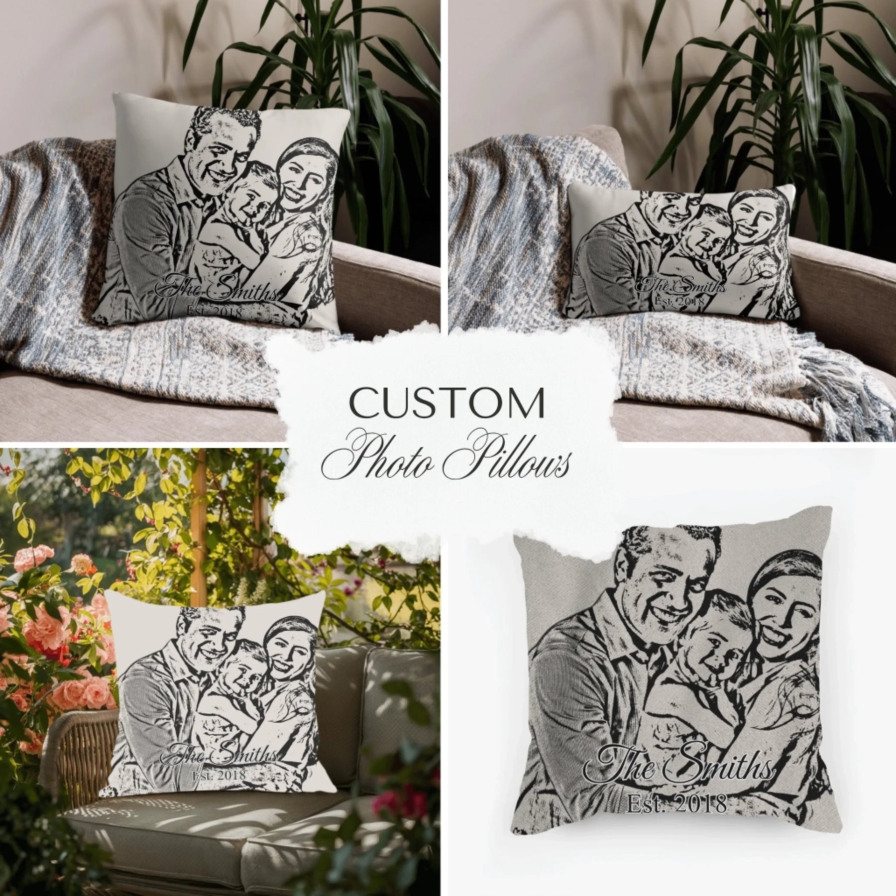 Custom Sketch Pillows – Personalized Photo Line Art Designs