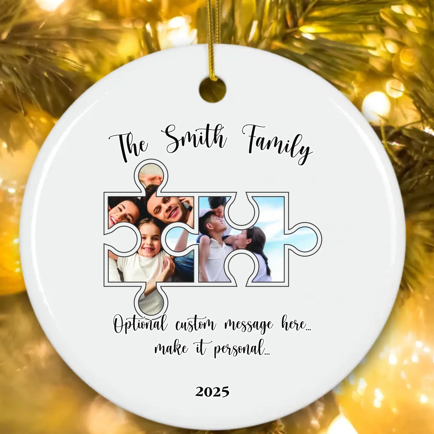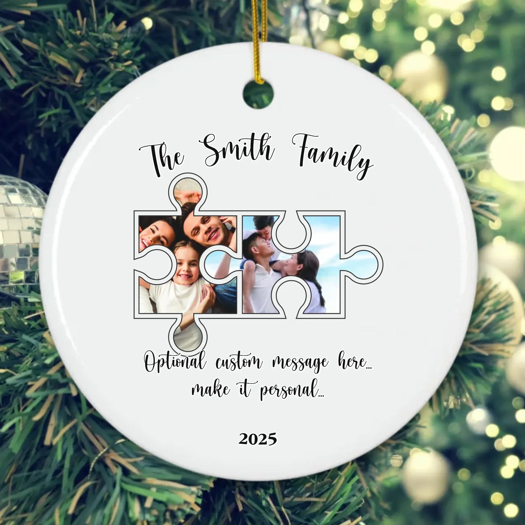 Custom Photo Ornament – Two Puzzle Piece Family Keepsake
