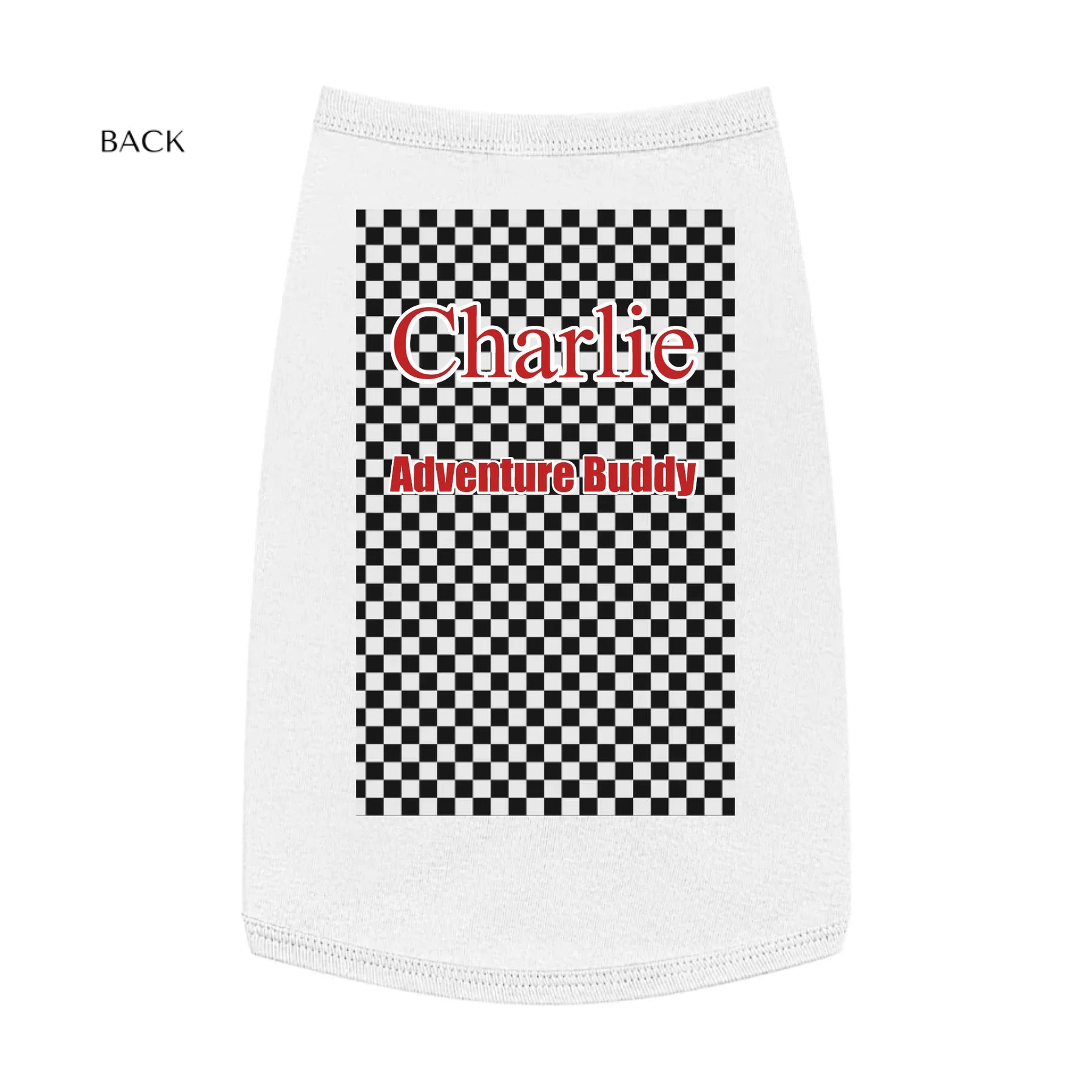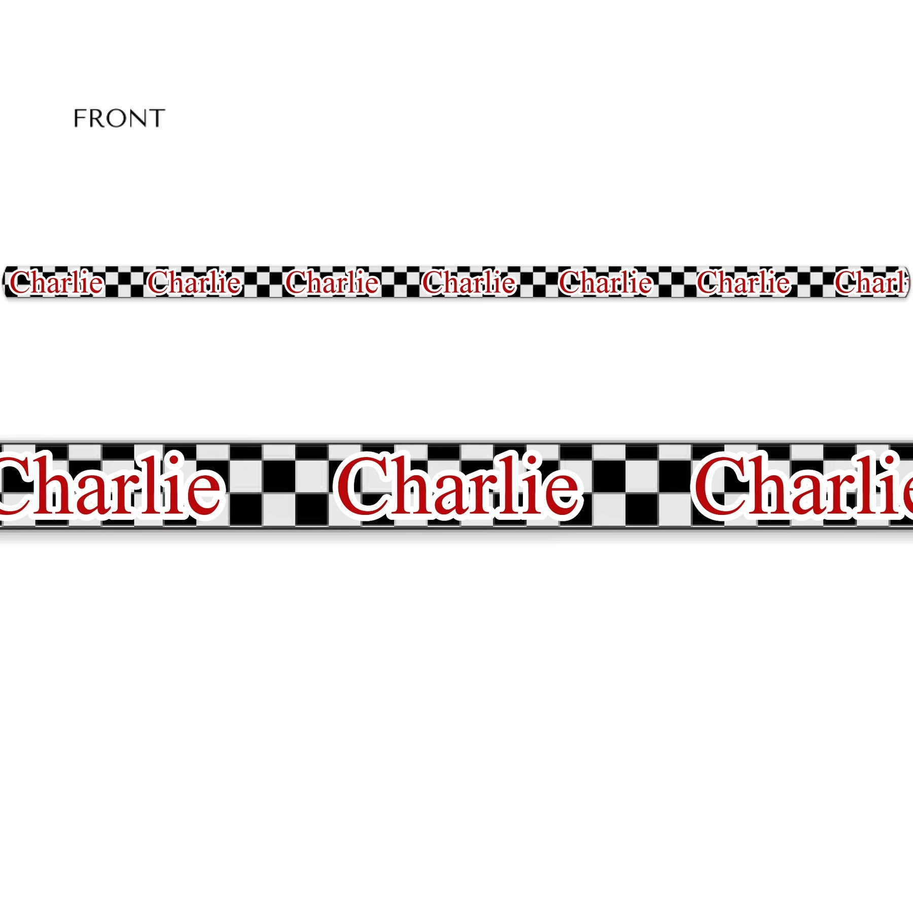 Customization is simple — upload your text, choose your preferred checkered pattern, and preview your design. Adjust color, font, and placement until it perfectly reflects your pet’s personality.