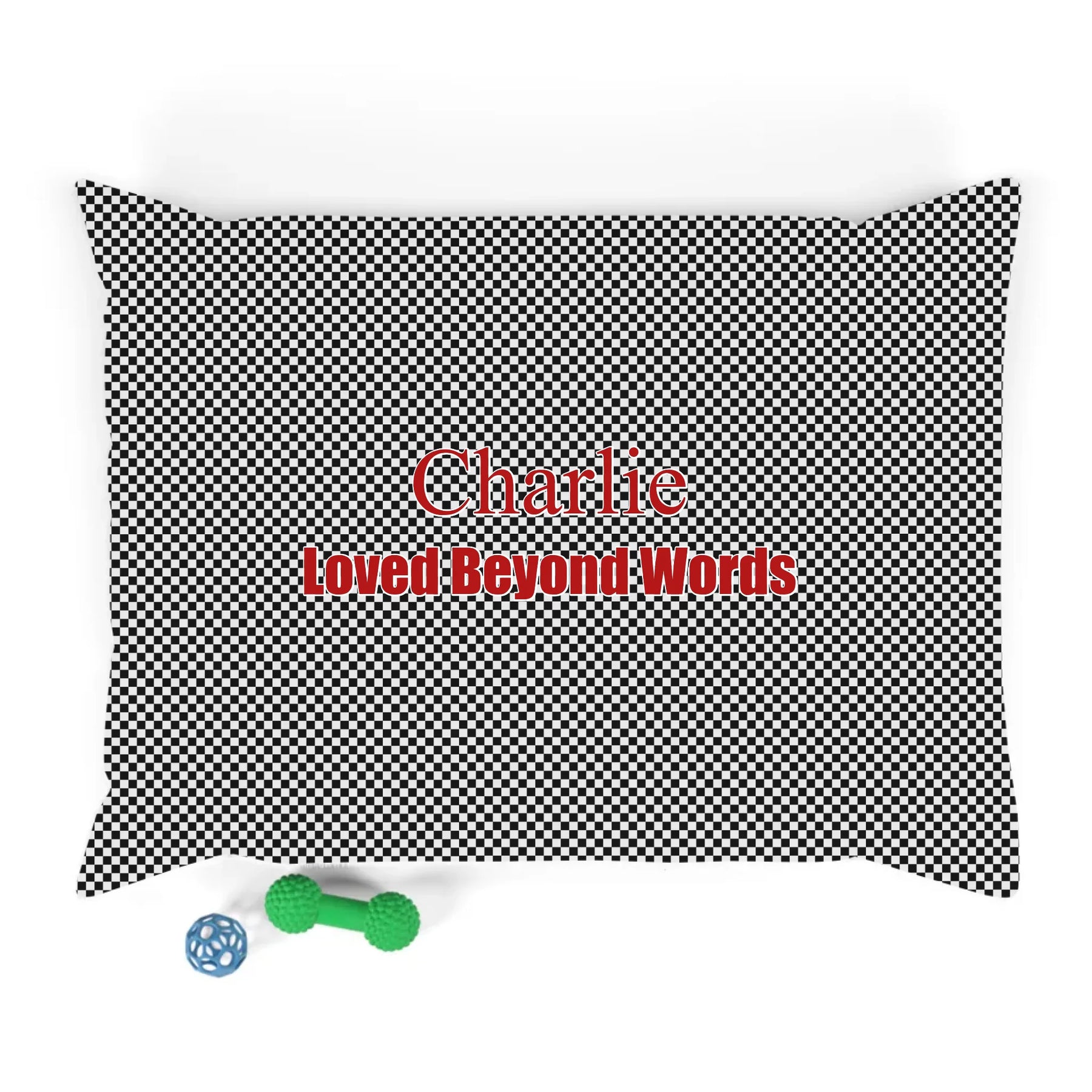 Pet Bed – soft, supportive, and stylishly checkered for your pet’s cozy corner.