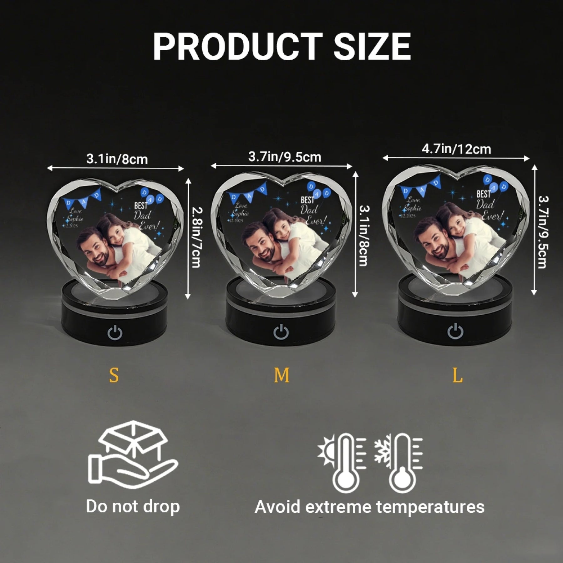Heart Lace Crystal Gift with soft LED light featuring engraved father and child photo and “Best Dad Ever” custom text-ARTFULANE