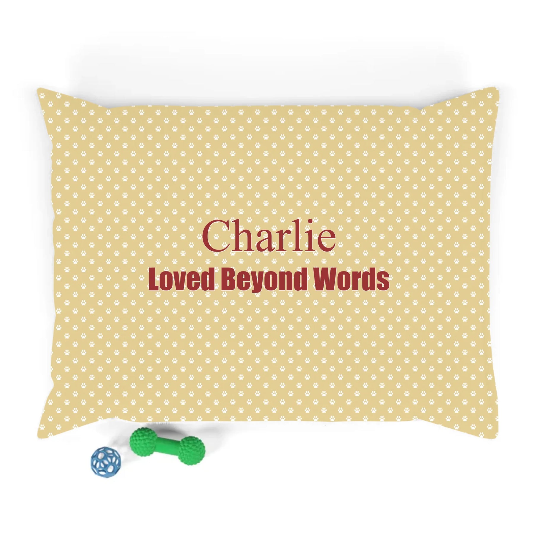 Pet Bed – soft and supportive, printed with your custom text and pattern for a stylish resting spot.