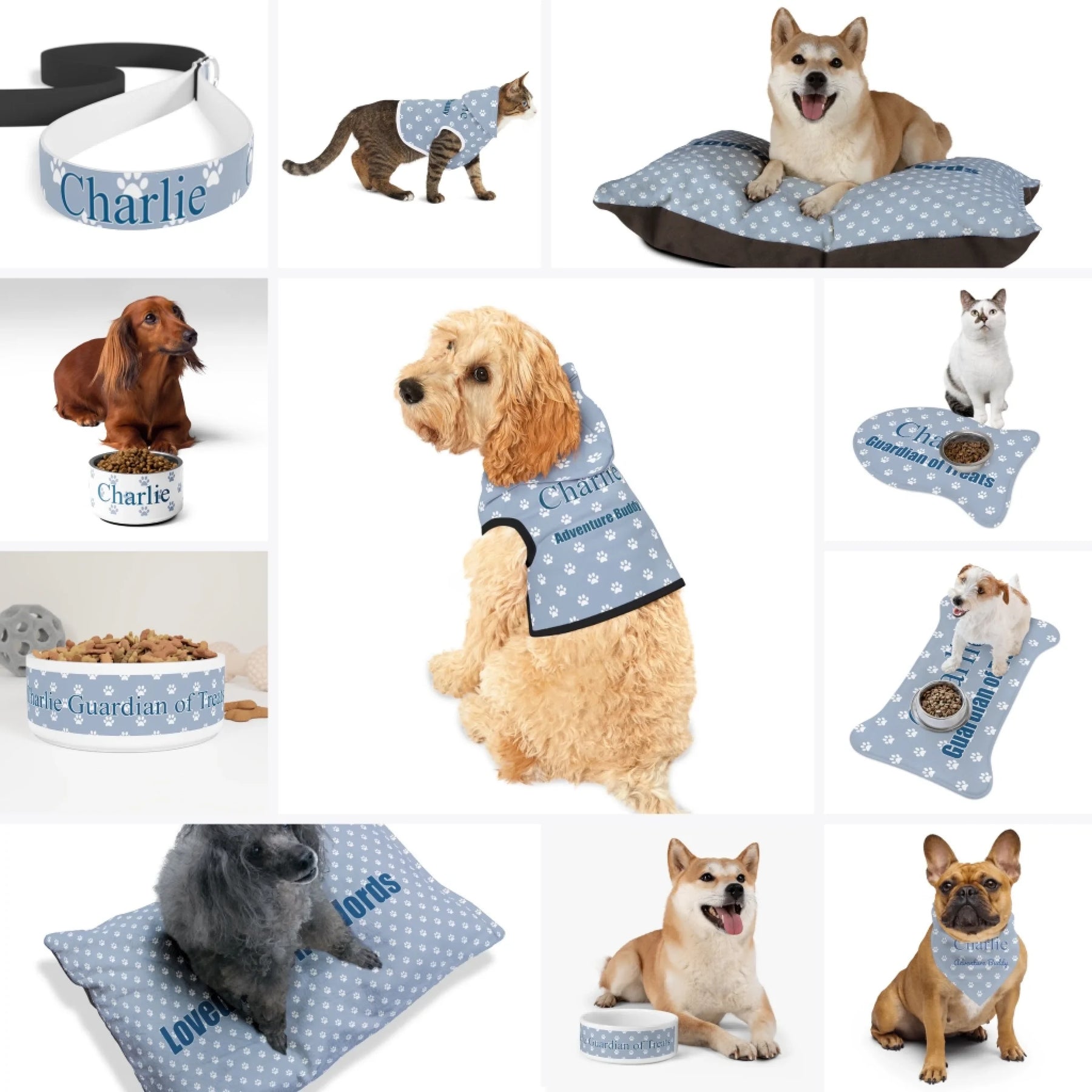 Custom Paws Print Pet Accessories – Matching Set (Hoodie, Bandana, Collar, Bowl & More)