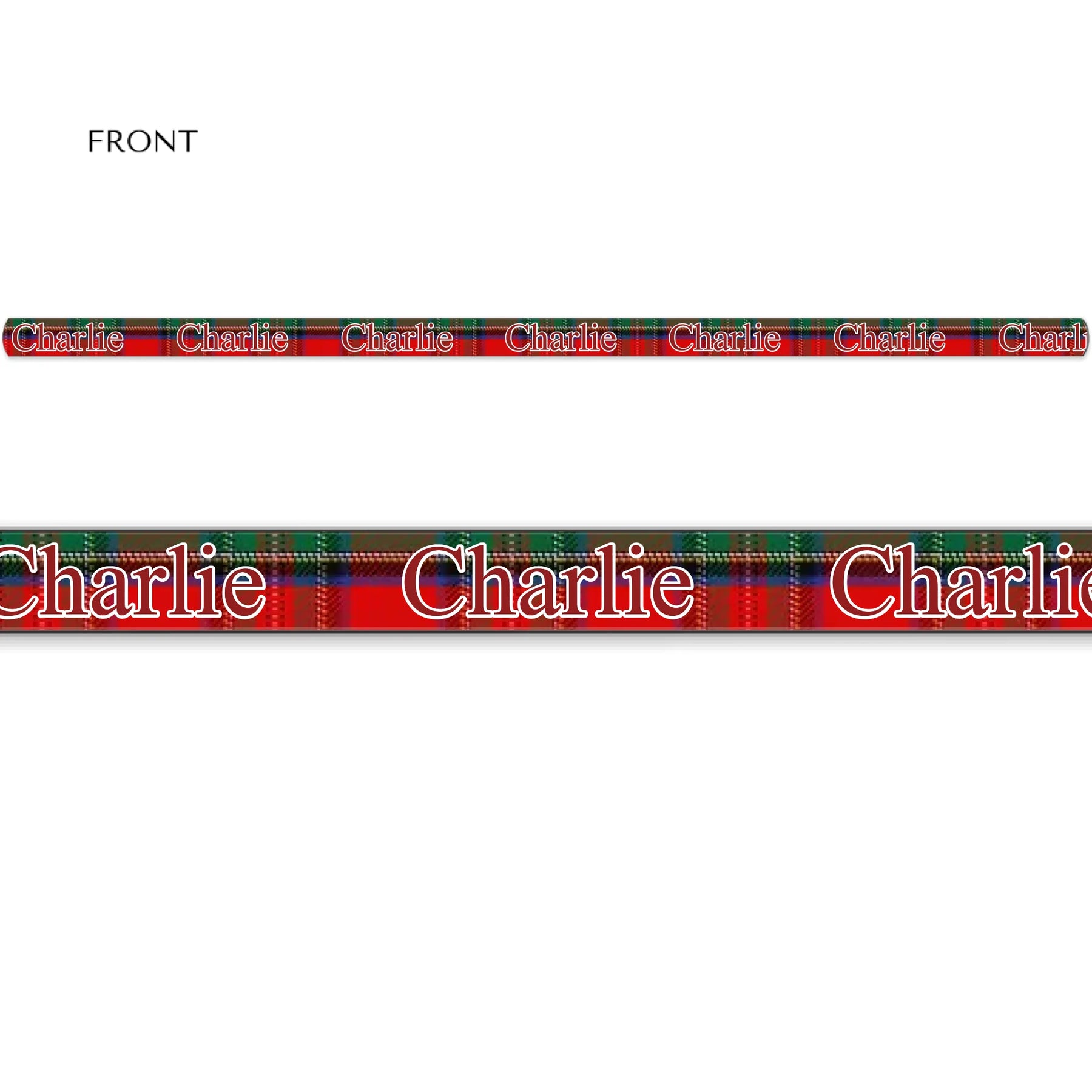 Front of Personalized tartan plaid pet collar with custom text like a name. Available in different plaid colors for dogs or cats-ARTFULANE