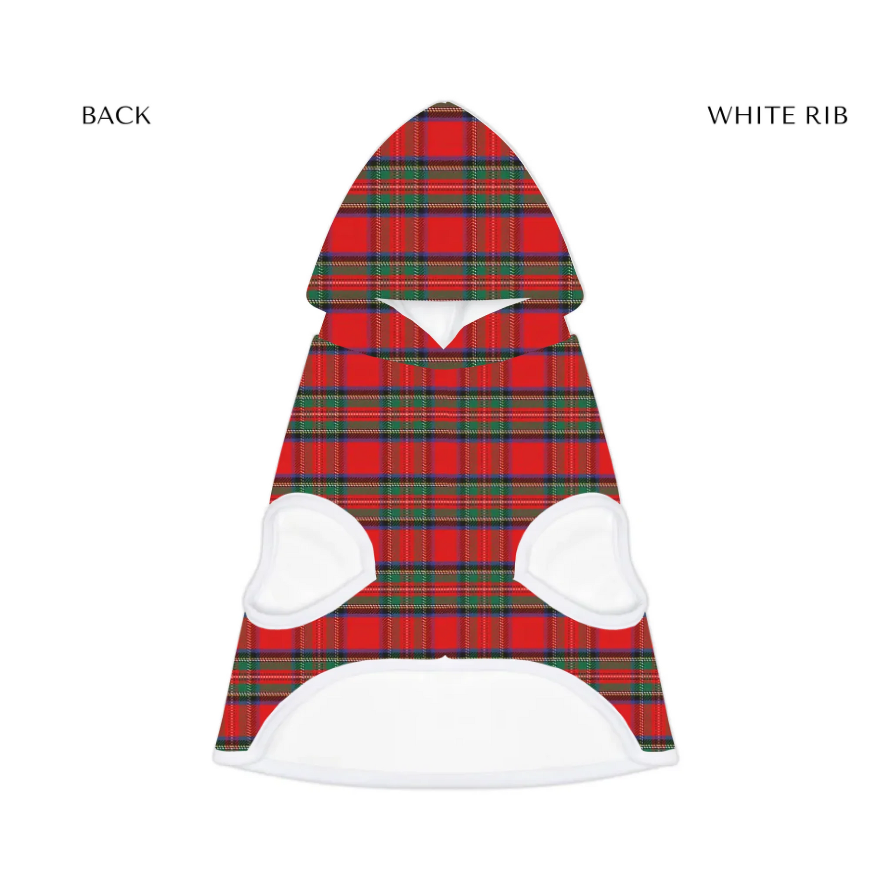 pet hoodie white rib front- Personalized tartan plaid pet hoodie with two lines of custom text. Available in different plaid colors for dogs or cats-ARTFULANE