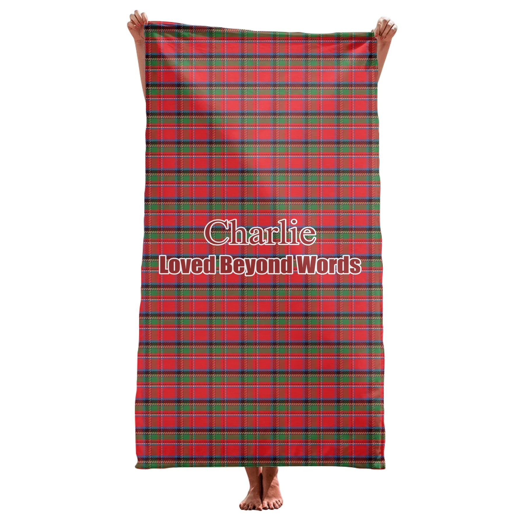 Personalized tartan plaid pet towel with two lines of custom text. Available in different plaid colors for dogs or cats-ARTFULANE