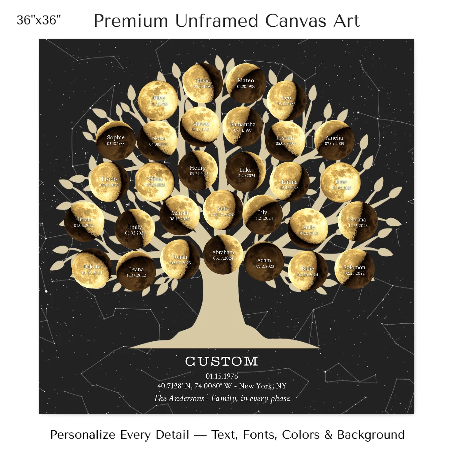 Custom Golden Moon Phase Family Tree Wall Art - ART-WPR582.4