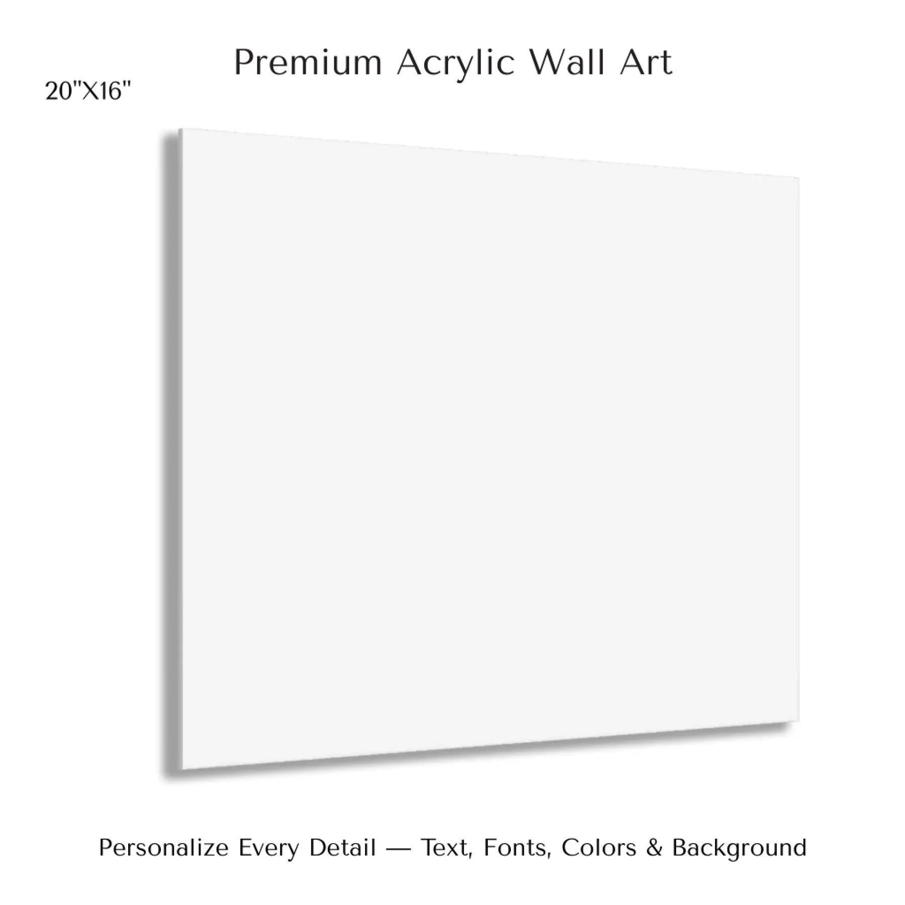 Elevate your space with ARTFULANE’s Custom Acrylic Wall Art Panels. These high-quality art panels are crafted from durable clear acrylic with a sleek white vinyl backing, giving a glass-like appearance that makes your custom designs pop with vibrant colors. Perfect for displaying photography, artwork, or personalized images, each panel comes with four brushed silver stand-offs for a luxurious, gallery-quality finish. Available in seven sizes and orientations—vertical, horizontal, and square—our custom acrylic panels add a touch of sophistication and modern style to any room.