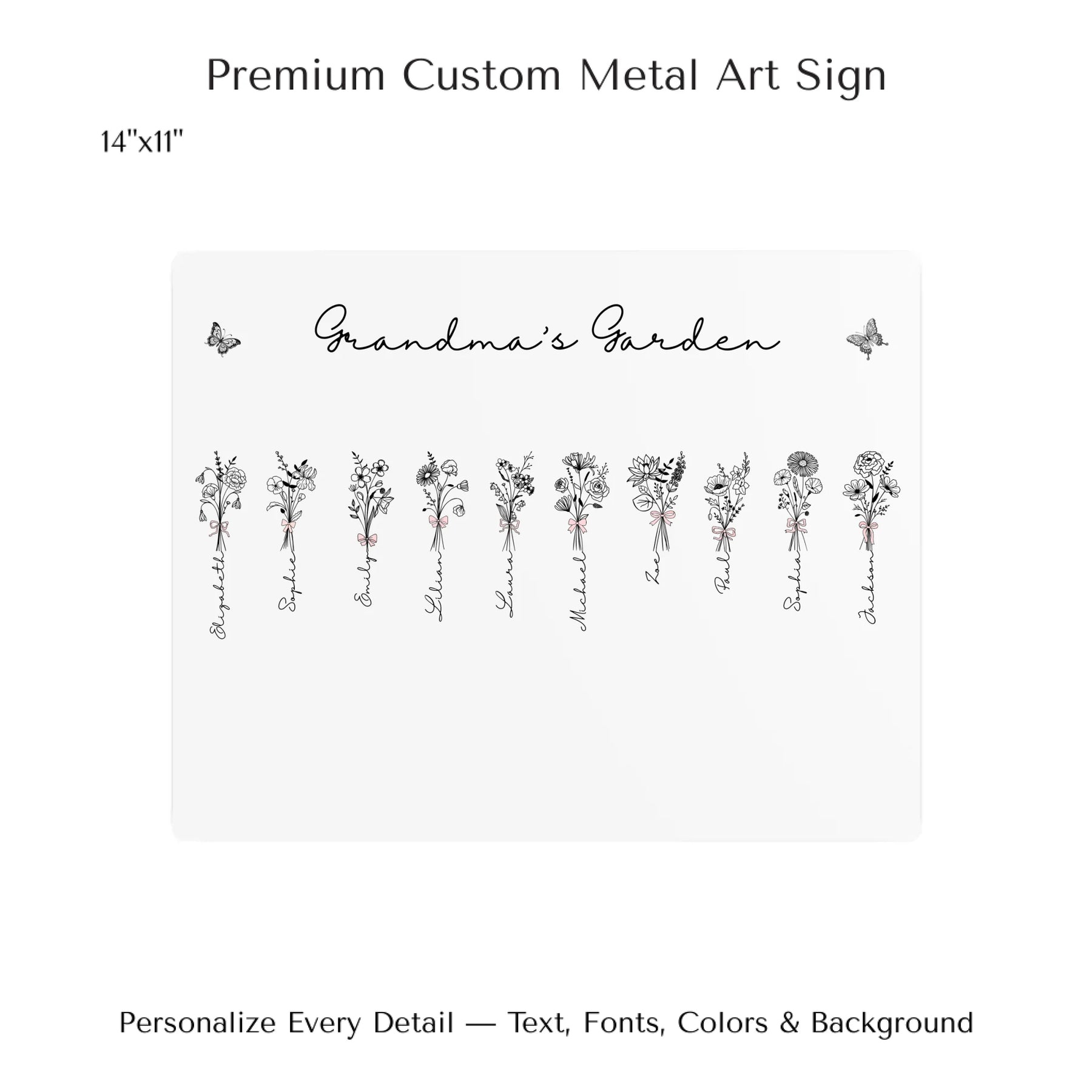 This custom floral wall art features your choice of up to 15 birth flower bouquets, each paired with a name and arranged in a refined coquette-inspired design. The gentle details and soft line work bring warmth and grace to any wall, creating an artwork that feels both modern and nostalgic.