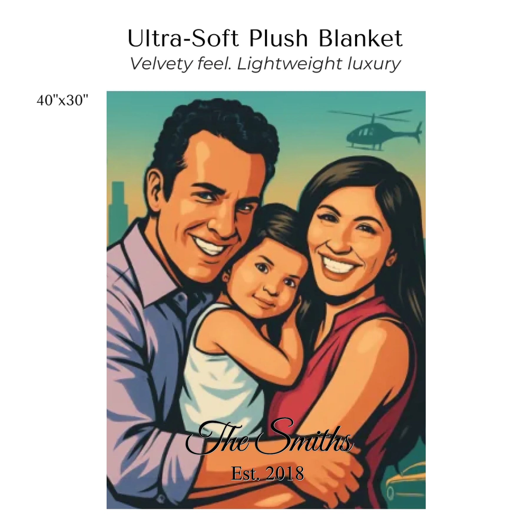 Custom Urban Comic Poster-Style Portrait Blanket - Plush, Sherpa & Woven Cotton Blankets - ART-BLK883.8