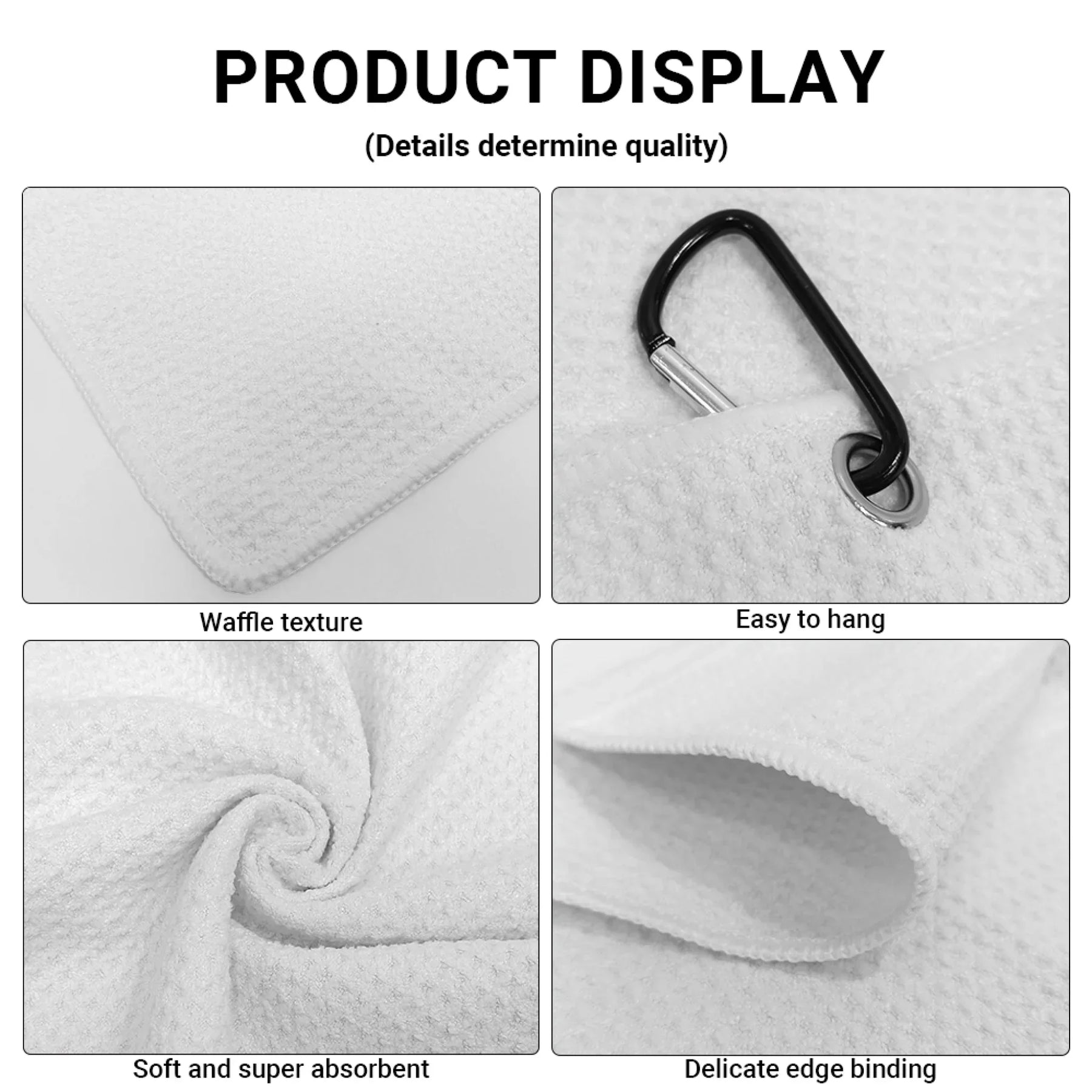 Each towel includes a sturdy carabiner, allowing you to easily attach it to your golf bag, cart, or belt loop for quick access on the course.