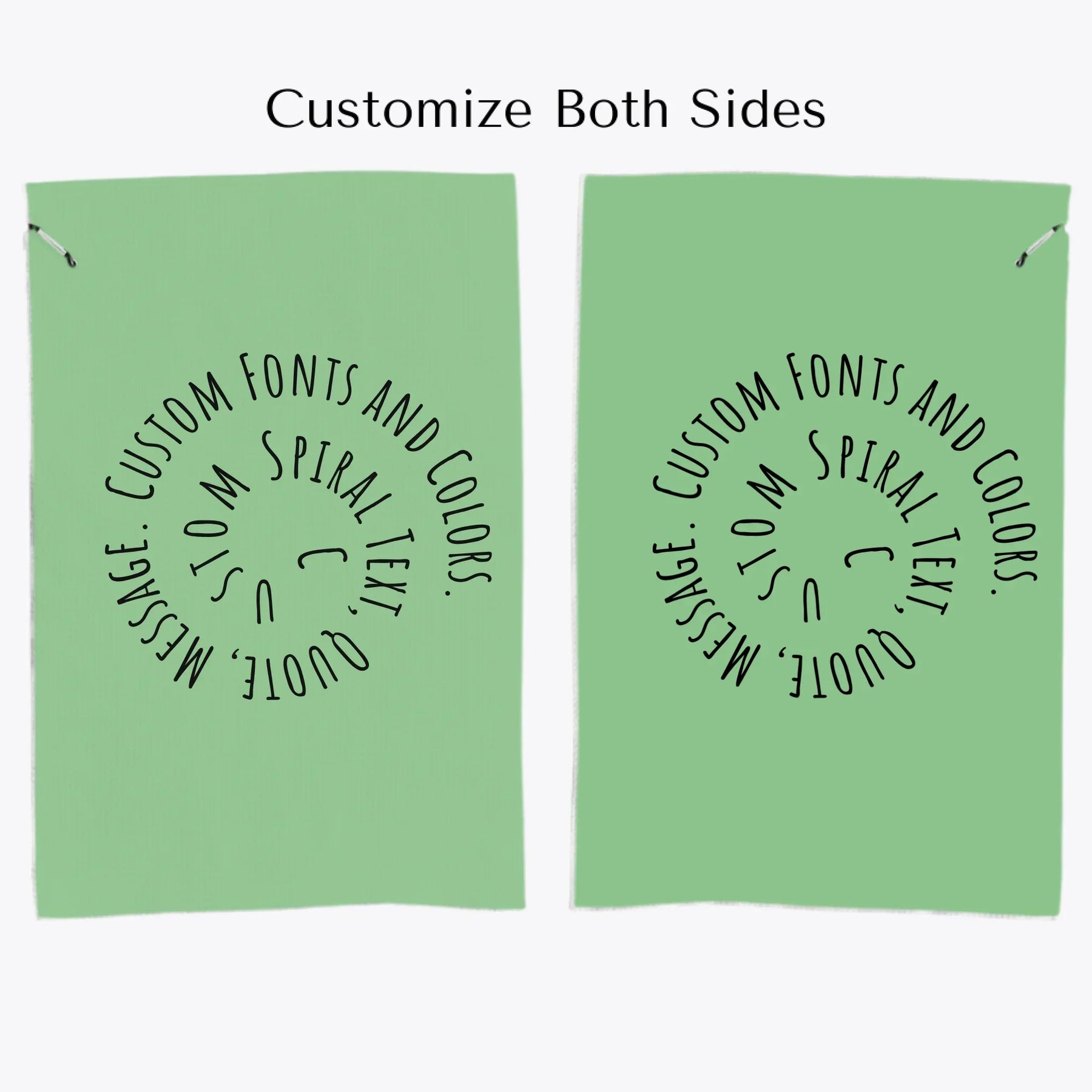 • Golf Towel (2-Side Print): Soft, absorbent microfiber with your spiral message printed clearly.