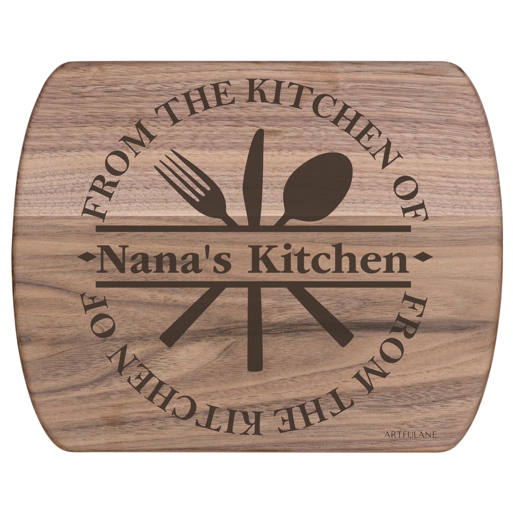 These premium hardwood boards feature nine beautifully detailed monogram designs, each carefully engraved to showcase your personalized name — such as Mom’s Kitchen, Nana’s Kitchen, or From the Kitchen of Sarah.