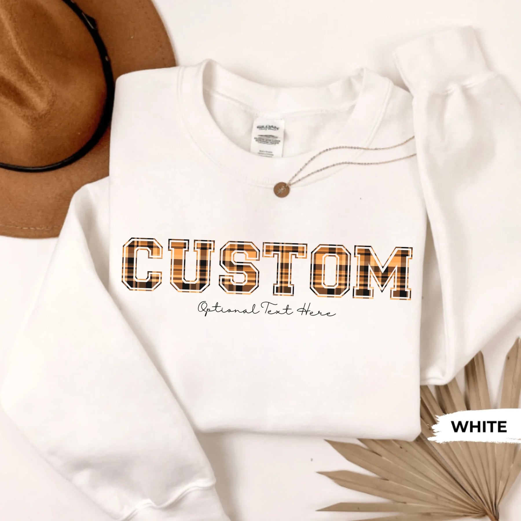 Custom Name Sweatshirt & Hoodie - Autumn Plaid Varsity Letters