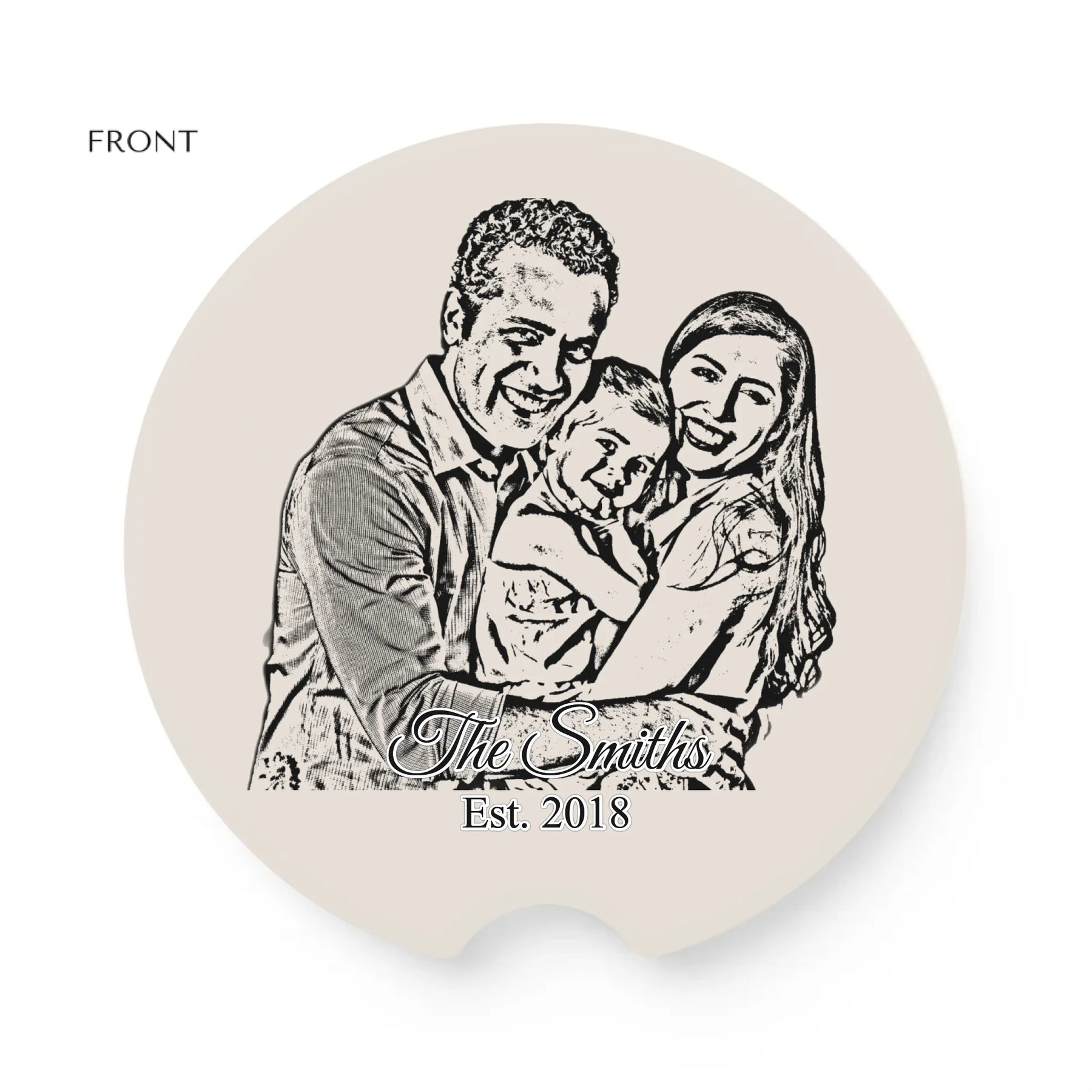 Each item features your uploaded photo turned into a beautifully detailed sketch with a background removed and enhanced by your choice of colors, fonts, and text. These personalized car accessories add meaning, sophistication, and creativity to your everyday drive.