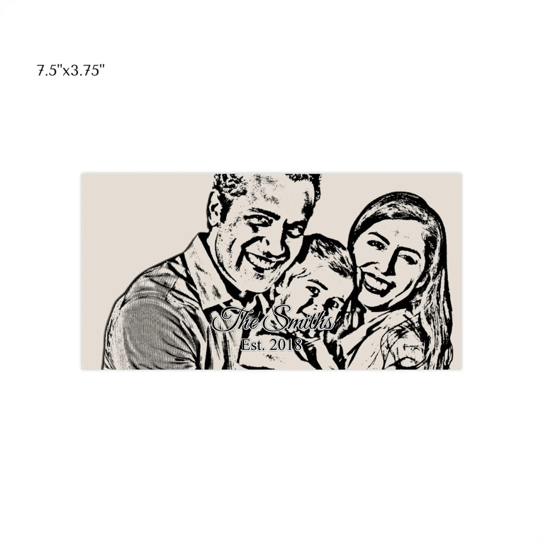 Upload a family portrait, pet photo, or memorable moment, and our artists will transform it into a custom sketch. Add personalized text like your name, date, or quote, and choose background and font colors that match your car’s personality.