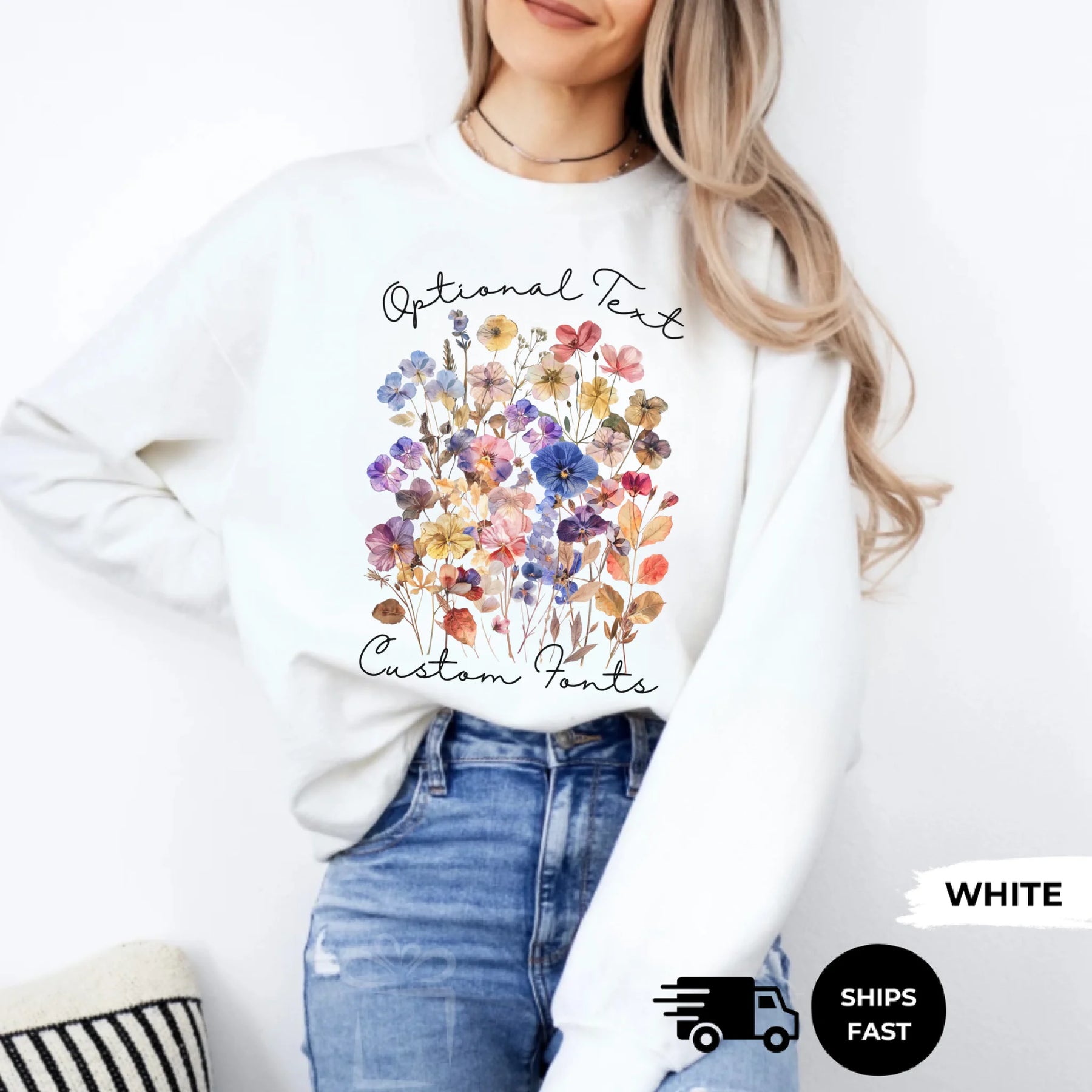 Bring nature’s beauty into your wardrobe with the Pressed Wildflowers Family Sweatshirt & Hoodie – ART-SWT813 by ARTFULANE. This elegant, nature-inspired design features a soft bouquet of watercolor pressed wildflowers, perfect for any season.