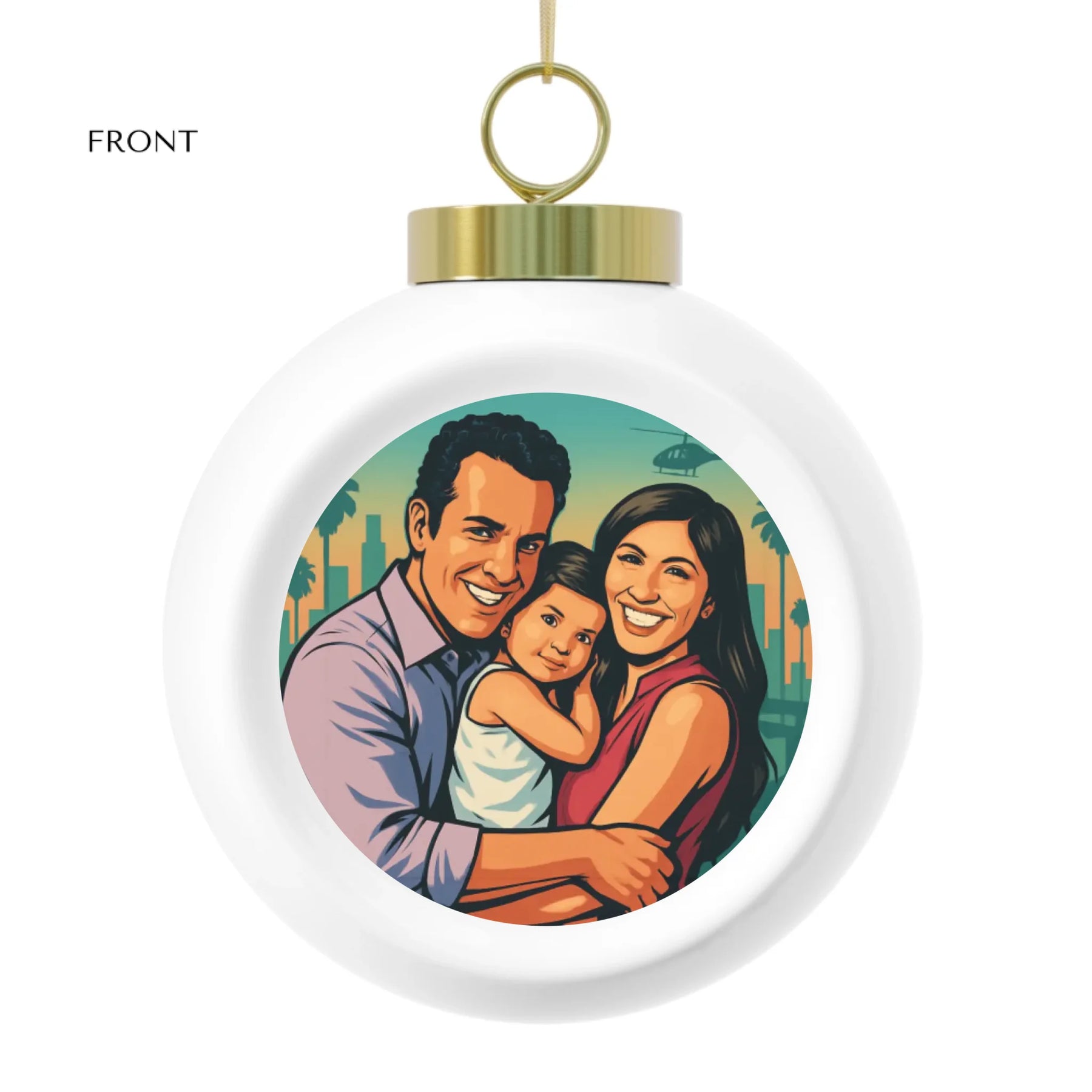 Custom Urban Comic Poster-Style Portrait Ornament - Ceramic, Glass, Pewter - Circle or Heart - ART-ORN883.8