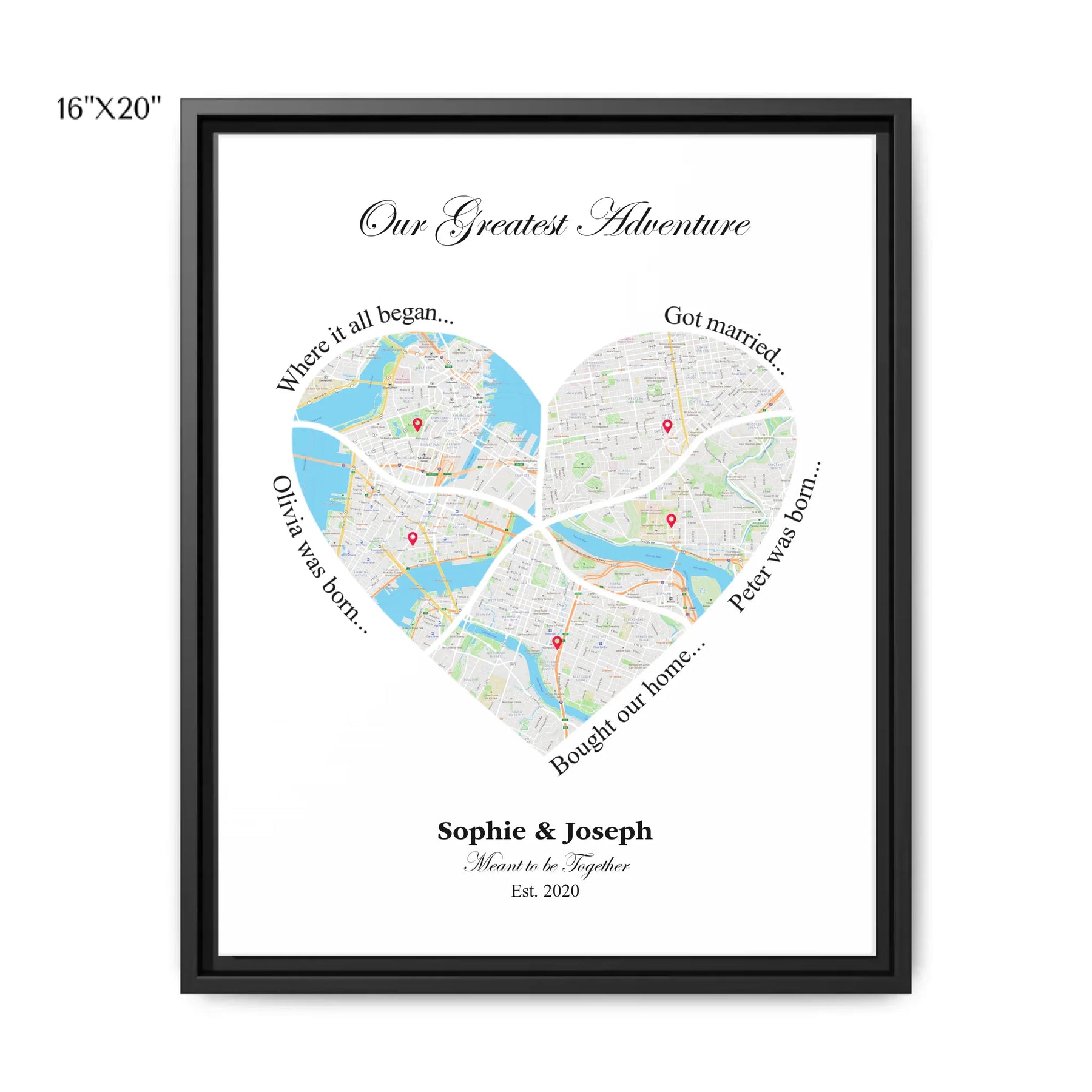Ideal for weddings, anniversaries, or as a housewarming gift, this heart map design adds a personalized touch to any space. It’s perfect for celebrating key moments and the people you love.