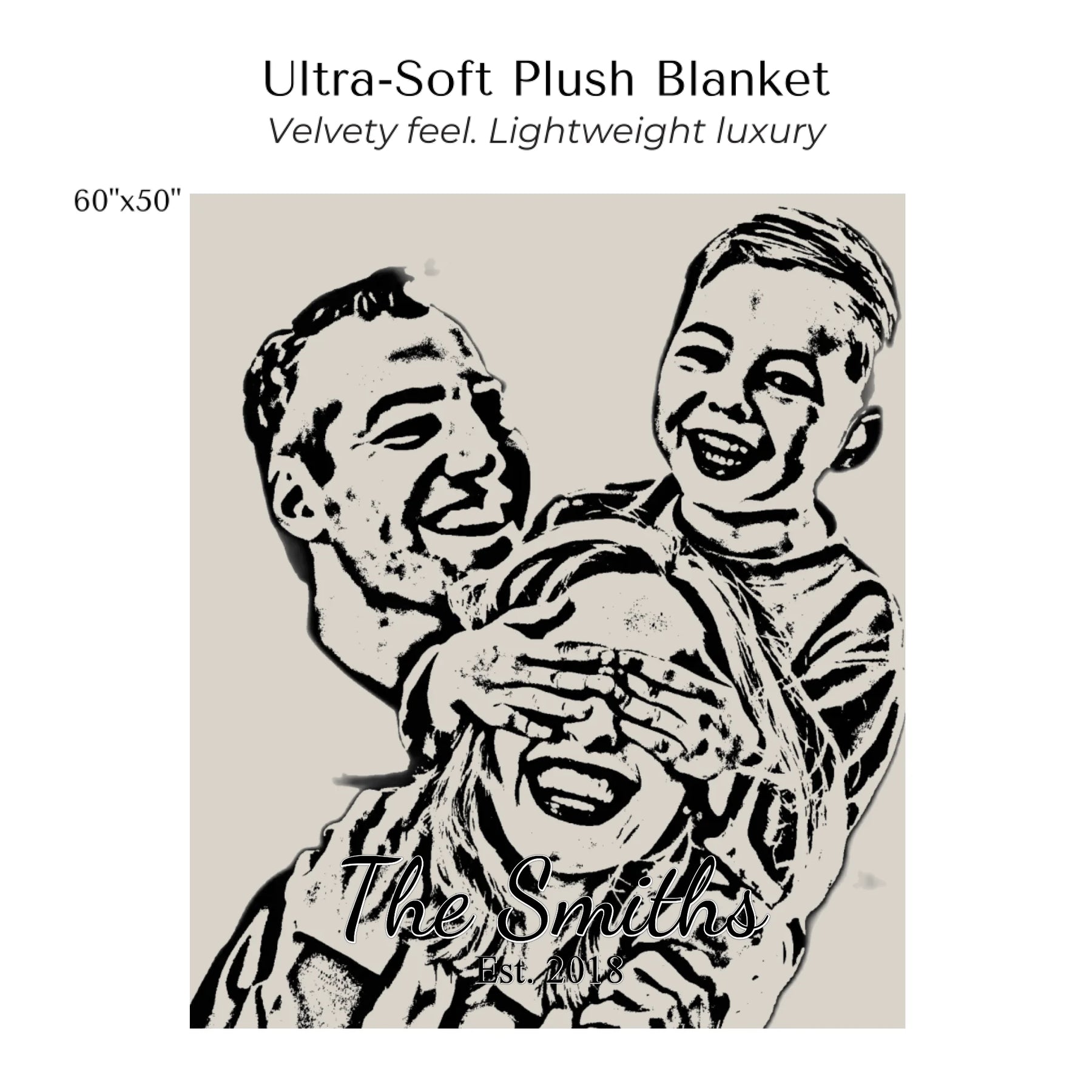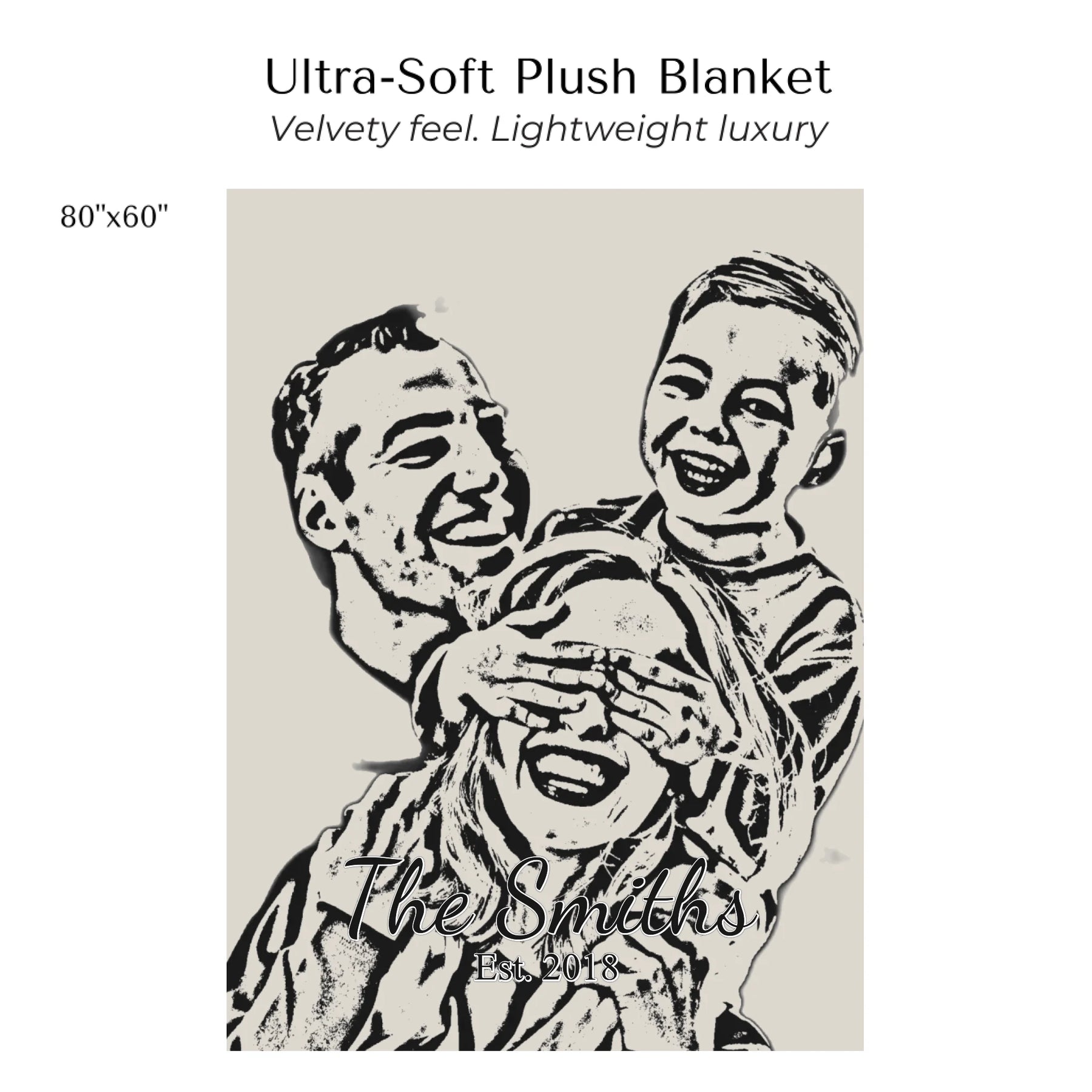 Wrap your memories in comfort and art with our Custom Photo Blankets. Each blanket transforms your favorite photo into a beautiful portrait sketch. The sketch is created automatically, giving your image a hand-drawn look filled with detail and character.