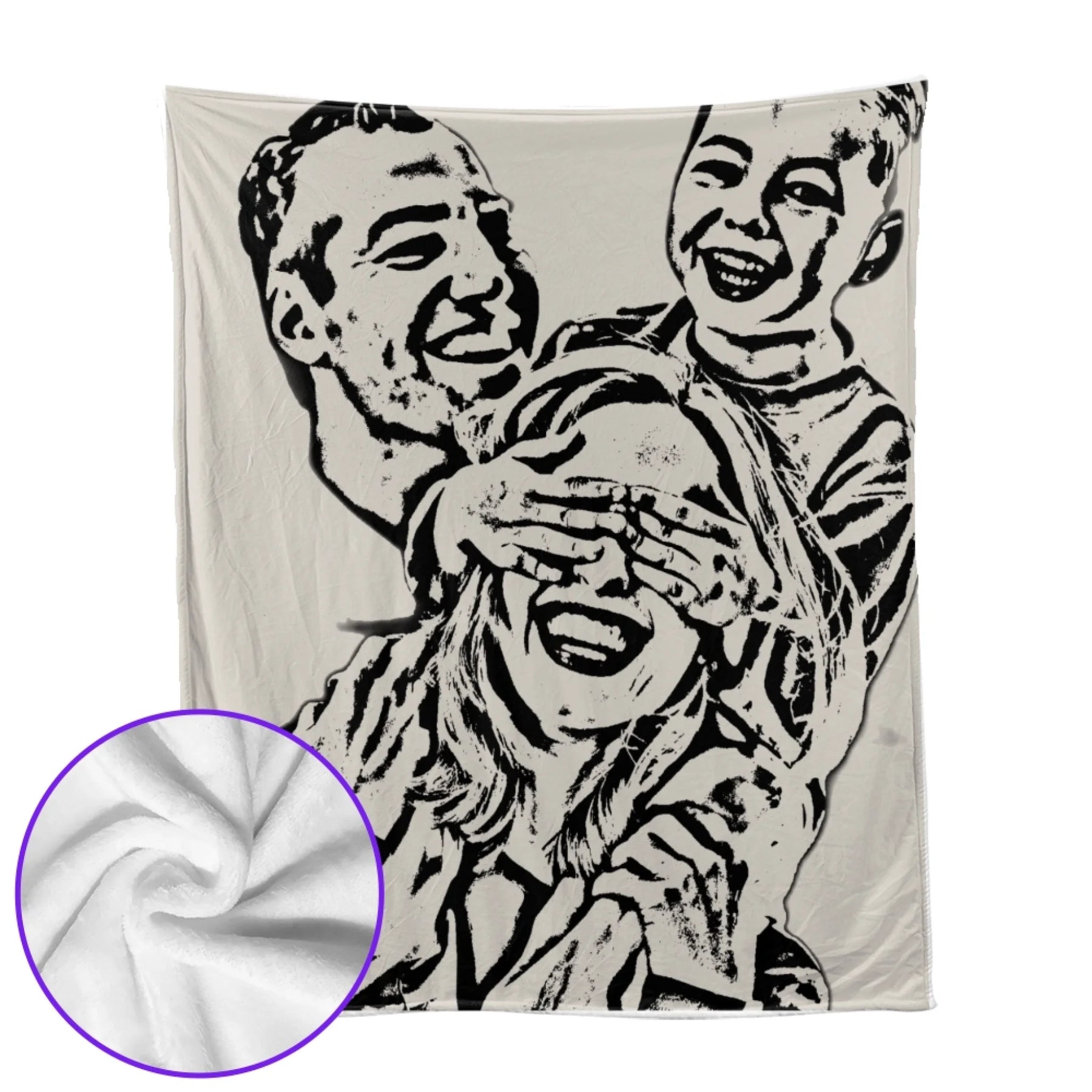 Custom Portrait Sketch Photo Blankets - Plush, Sherpa & Woven Blankets