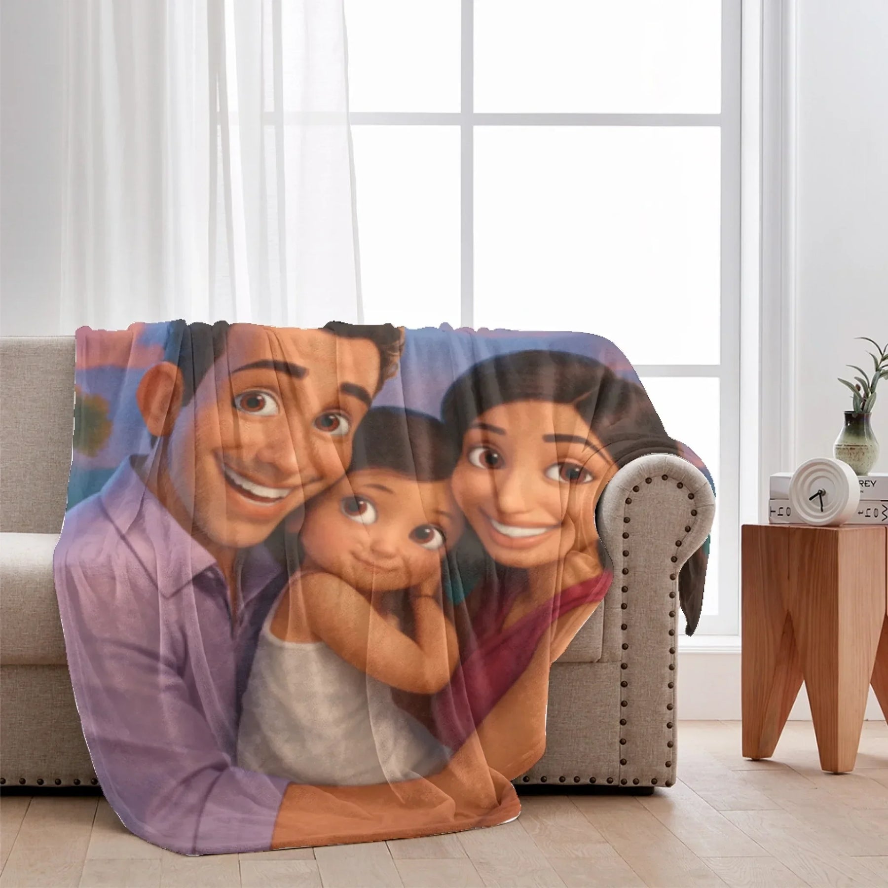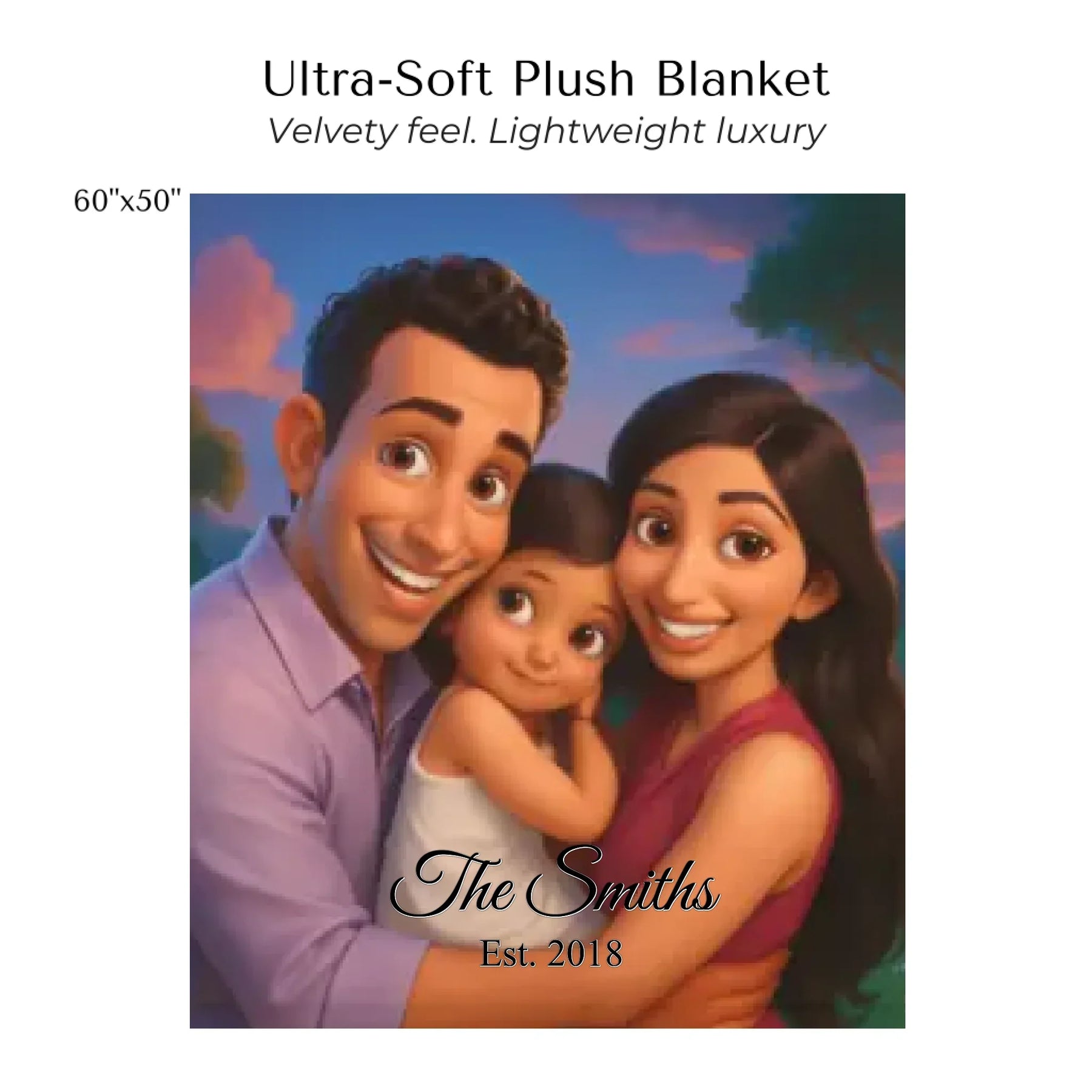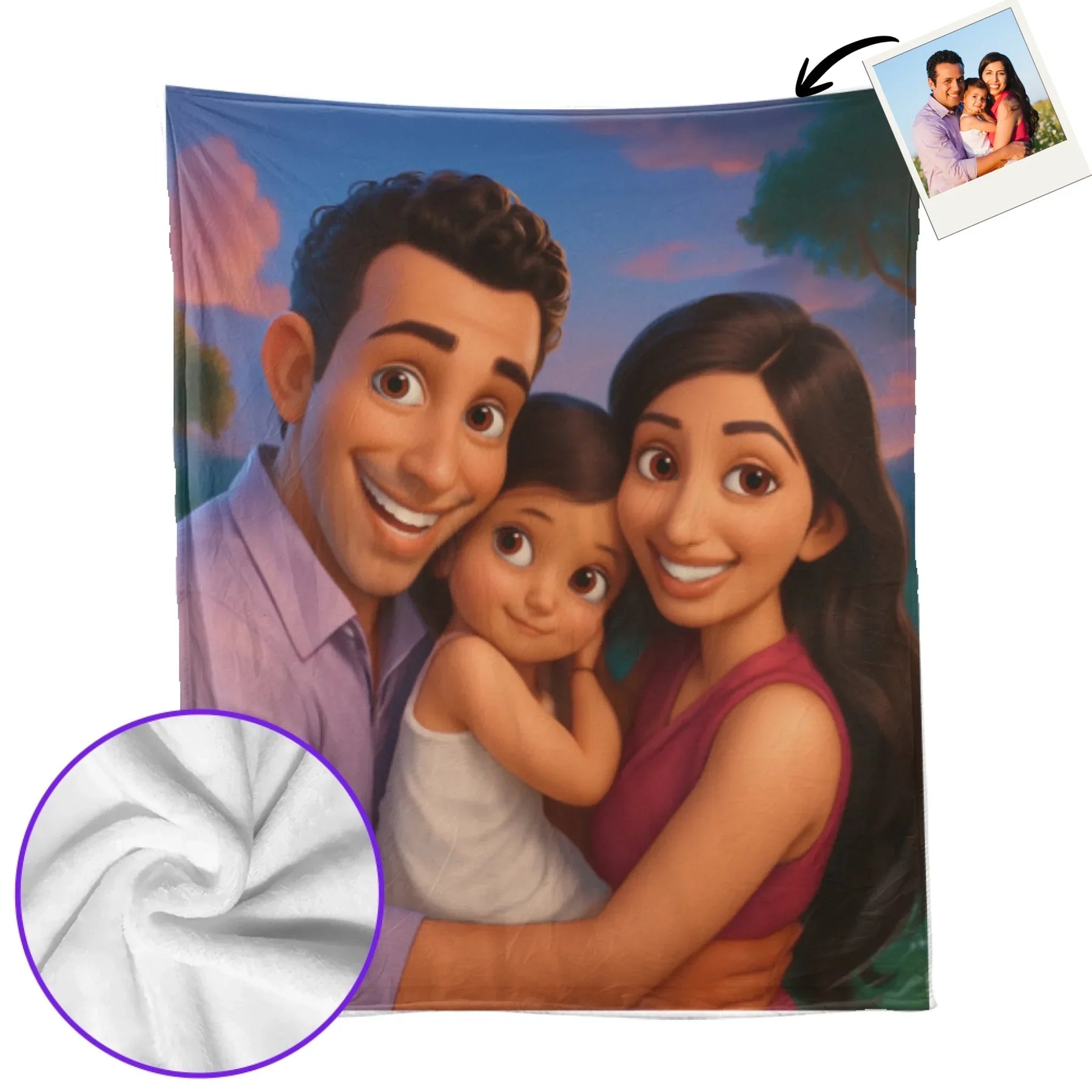 Custom Fairy-Tale Storybook Style Portrait Blanket – Plush, Sherpa & Woven Cotton Blankets