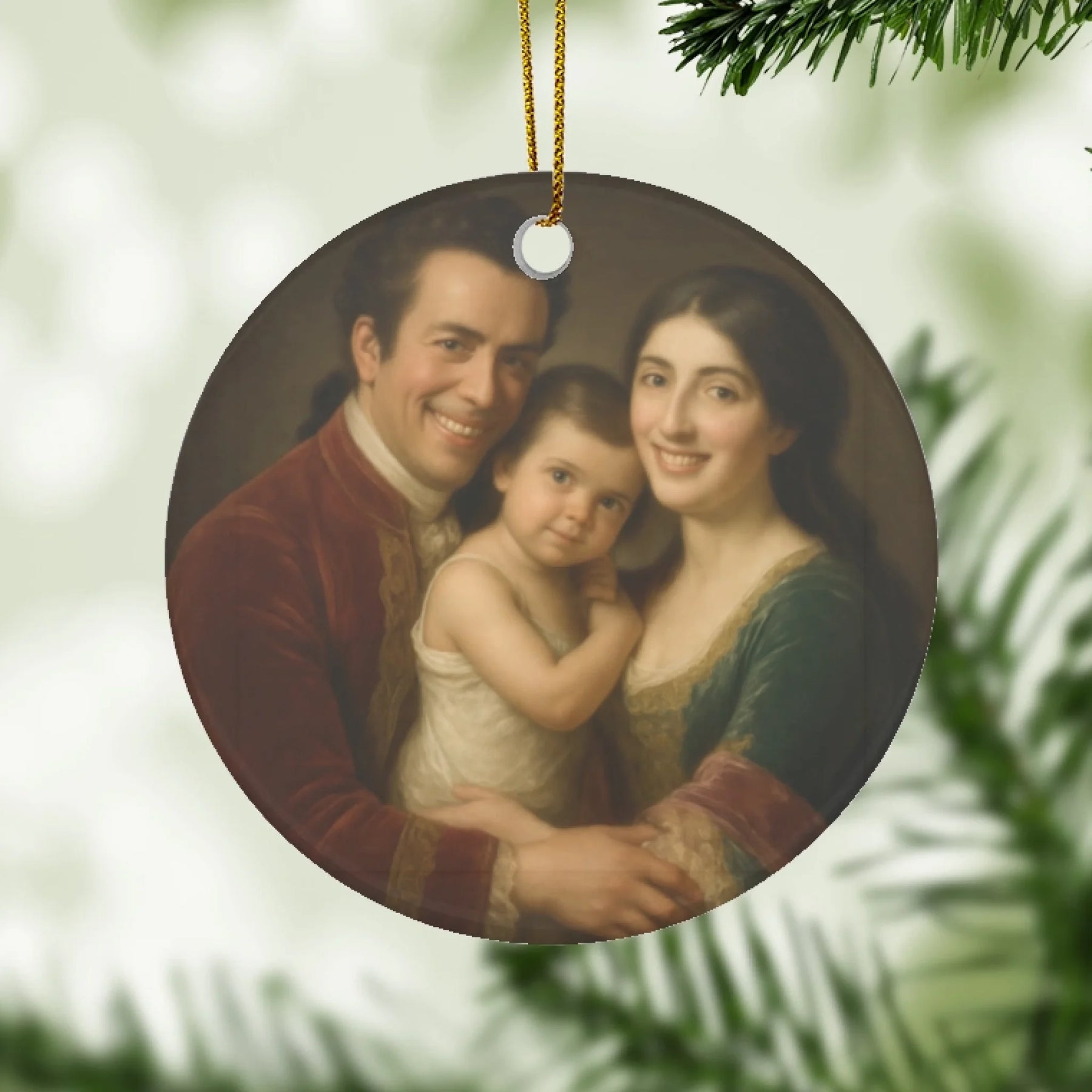 This royal portrait ornament transforms your photo into a majestic, historic-inspired keepsake. Personalize with names, dates, or short messages to create a memorable gift. Ideal for families, couples, or anyone who appreciates regal elegance and timeless design.