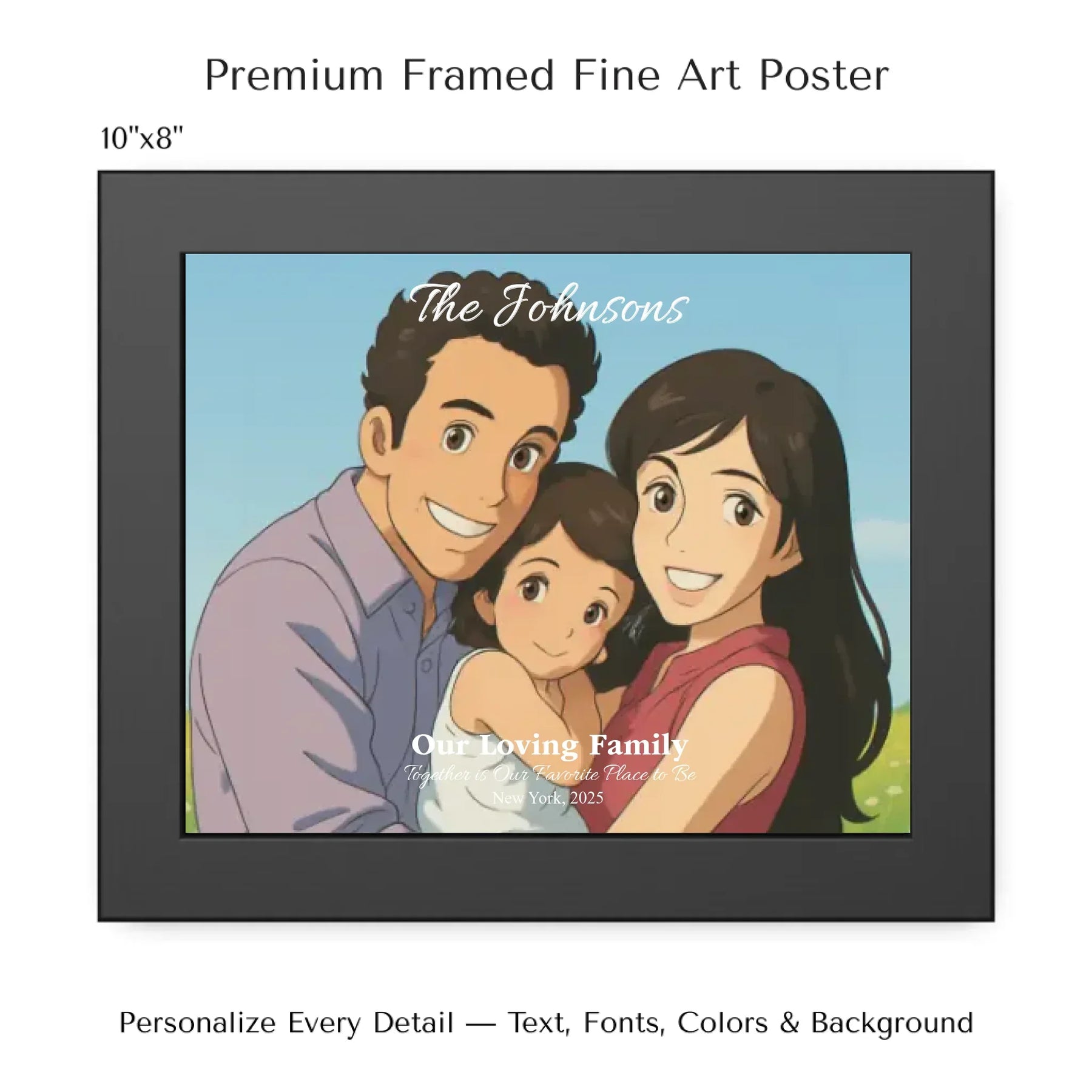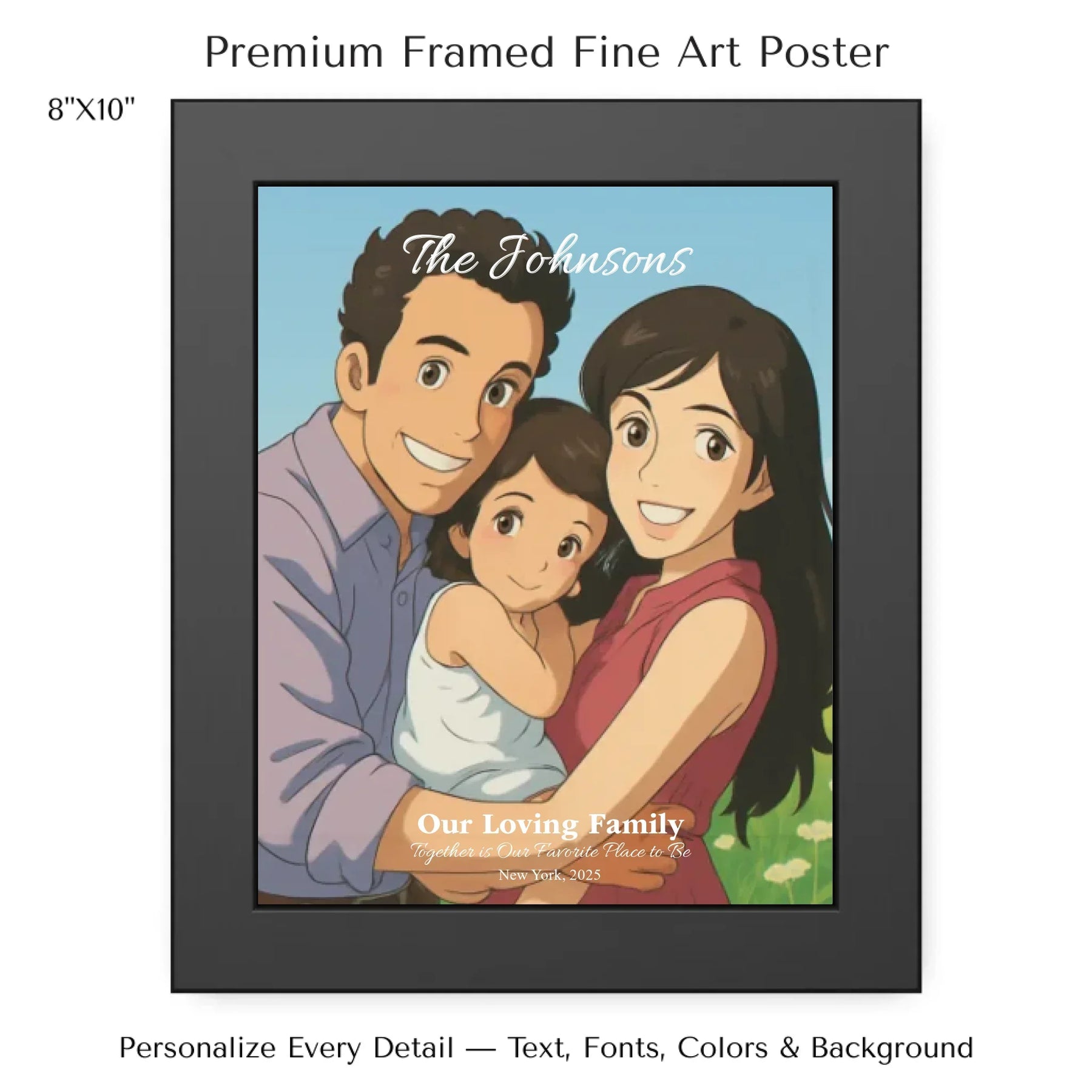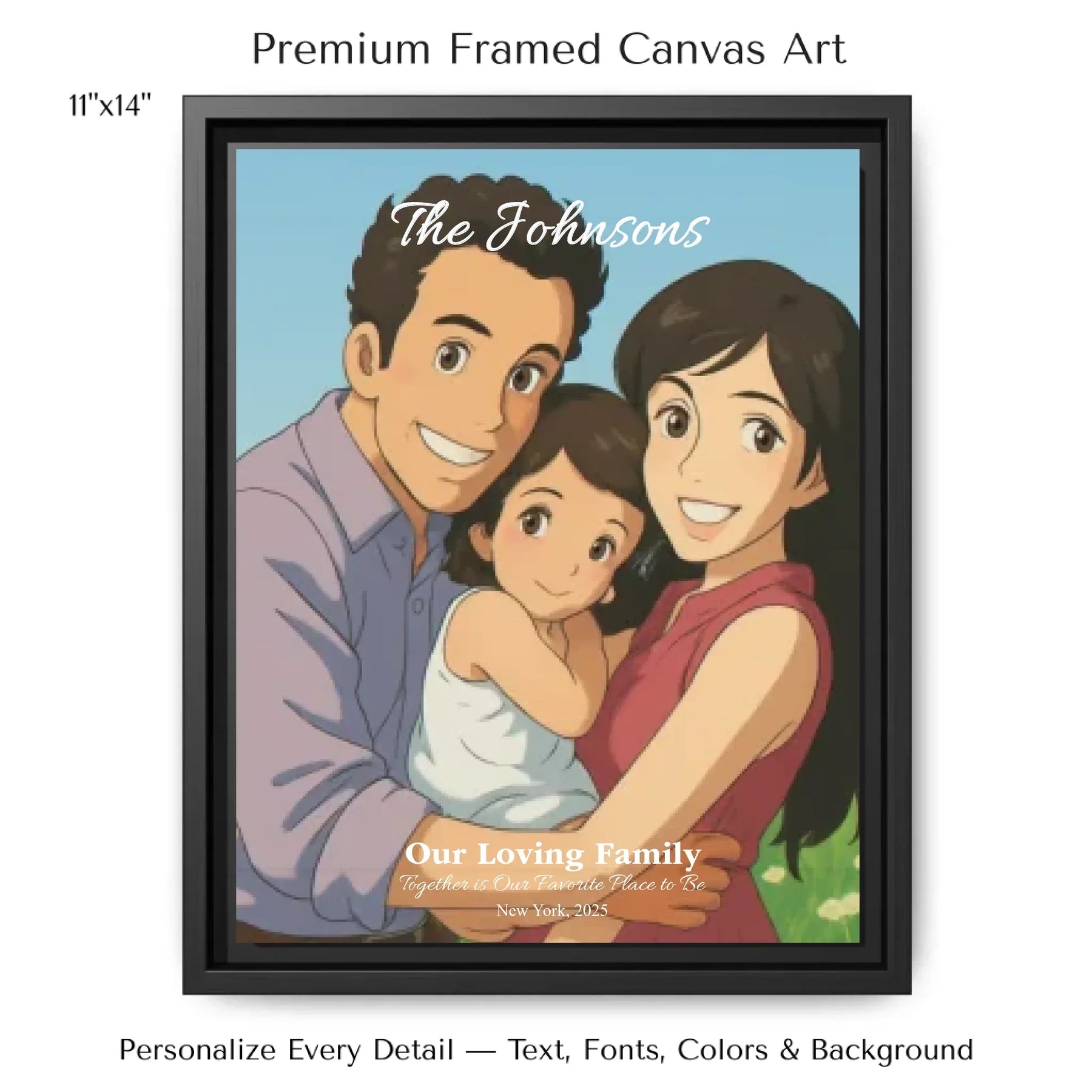 Personalizing your artwork is easy. Upload your photo, and it automatically converts into a dreamscape anime portrait. Reposition your image for the perfect composition. Add a custom title and up to three lines of text. Include names, dates, or heartfelt messages. Each detail creates a unique, meaningful artwork.