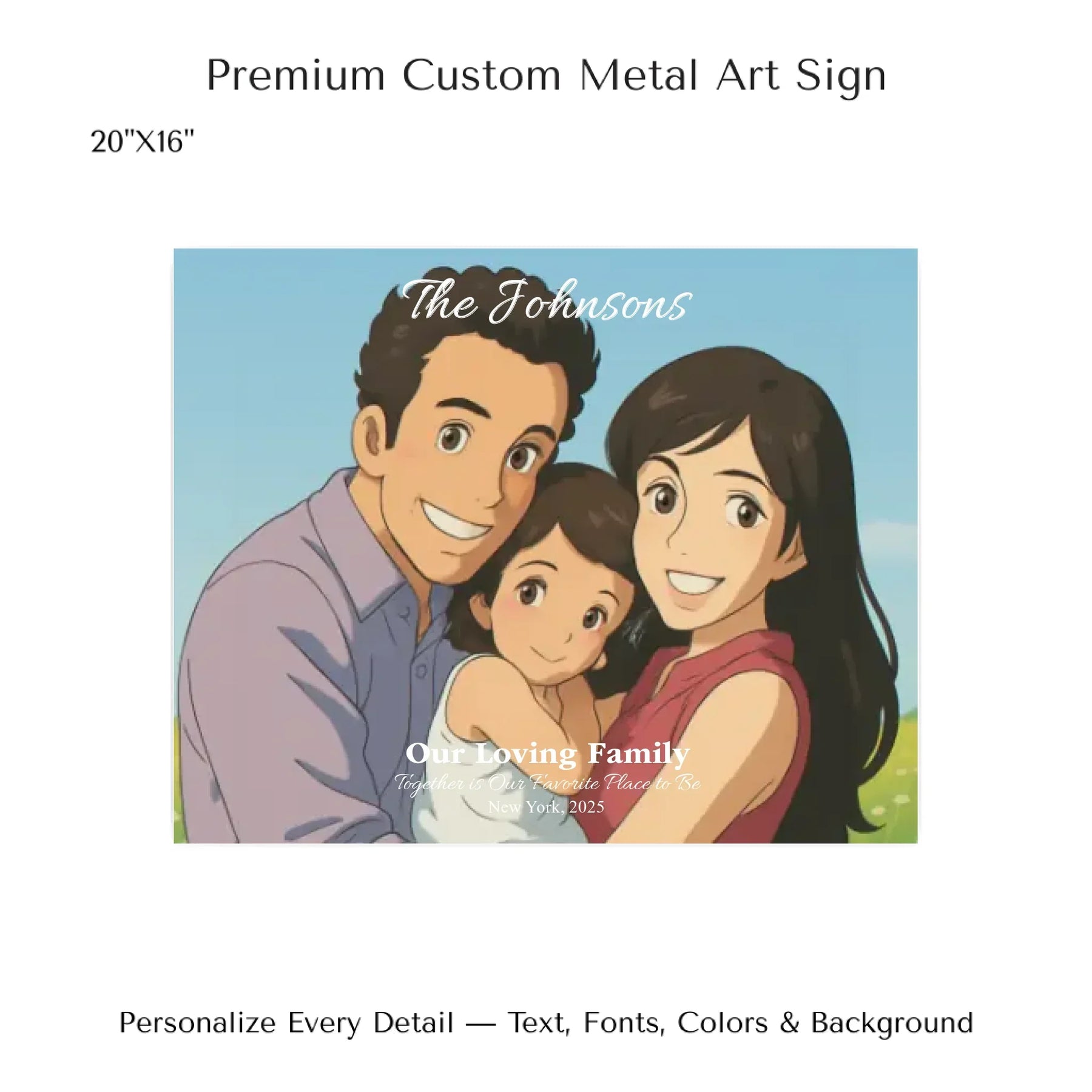 Upload family photos, couple selfies, pet pictures, or travel memories. Optional text allows names, quotes, or special dates. Choose from various fonts and colors. Every decision ensures your dreamscape anime portrait is personal, unique, and meaningful.