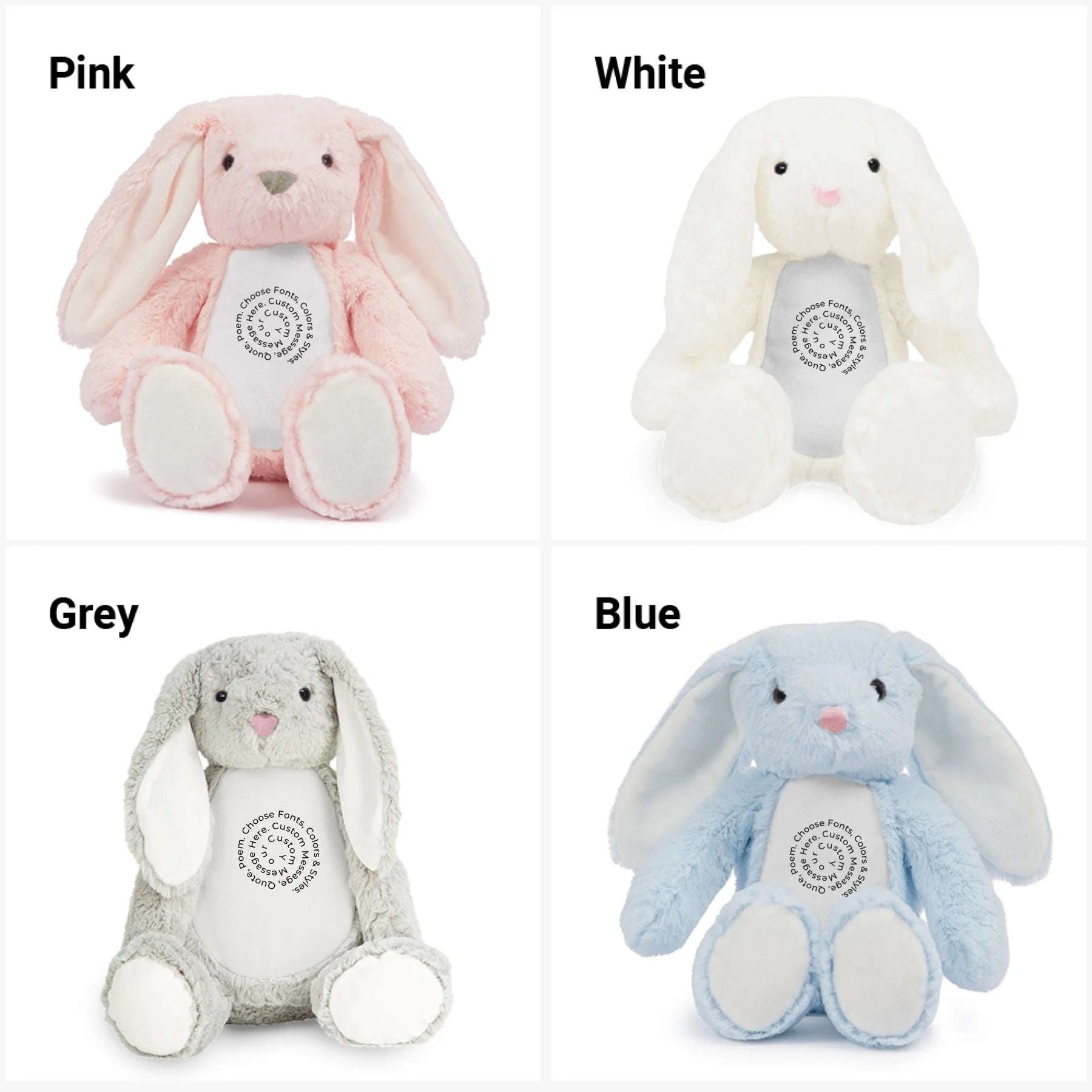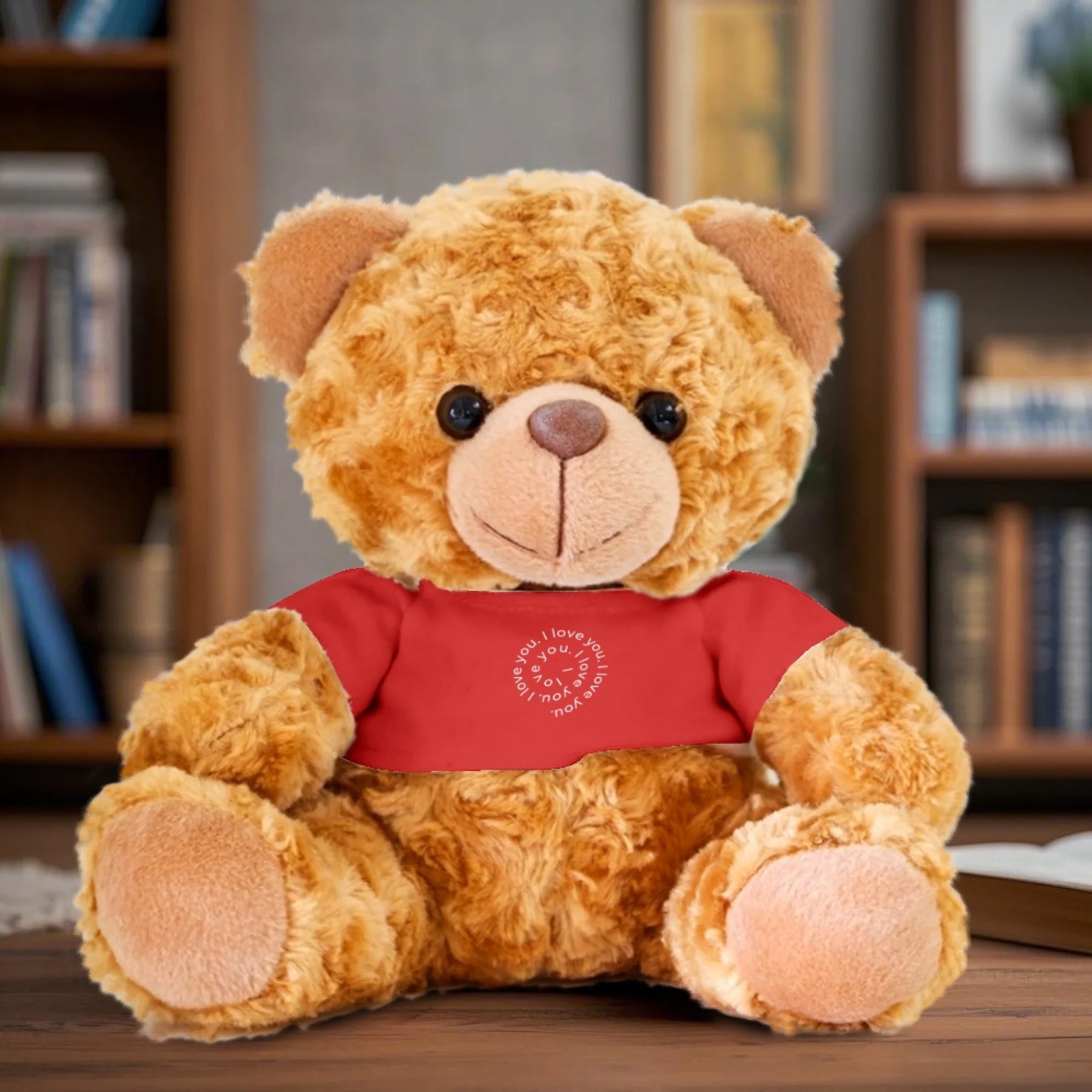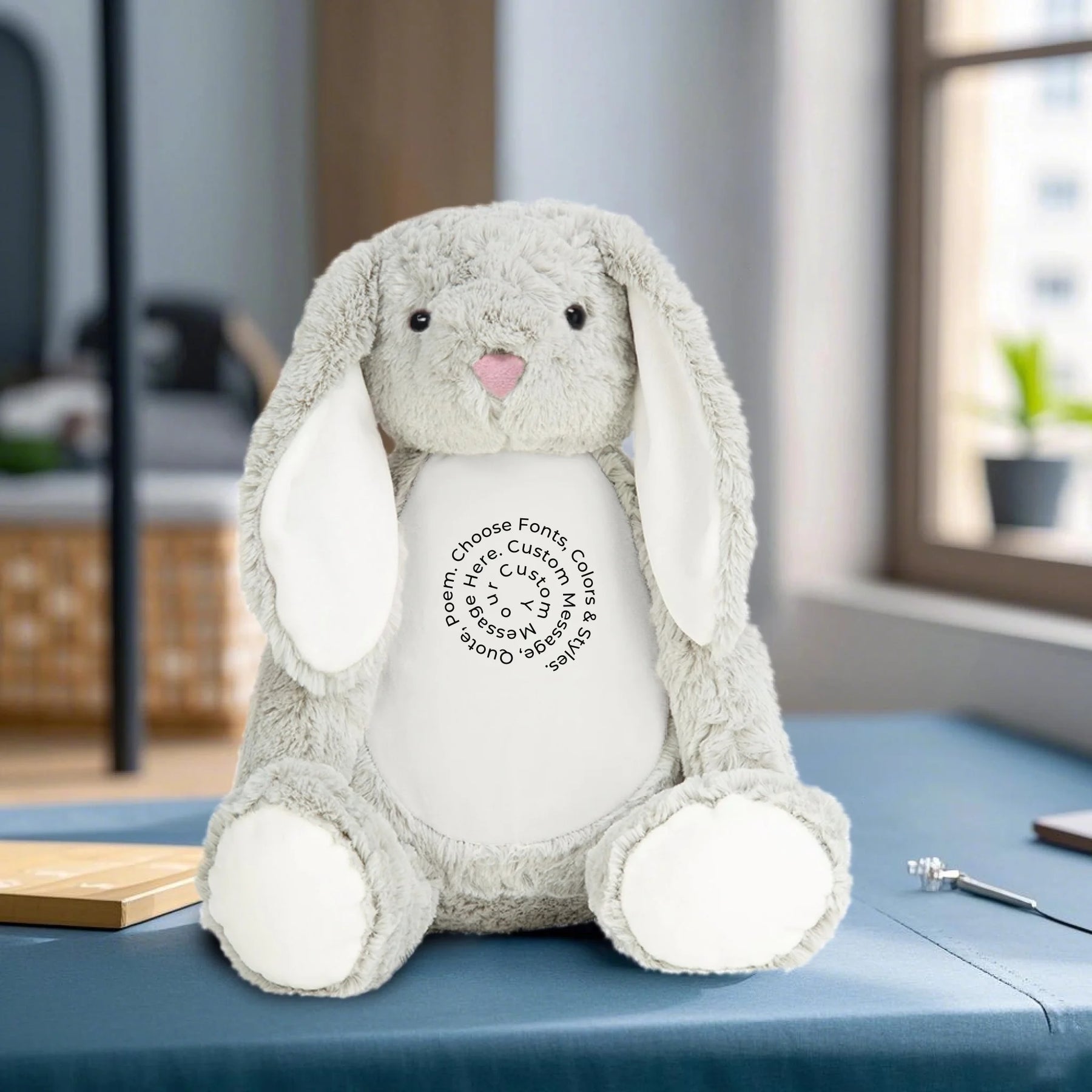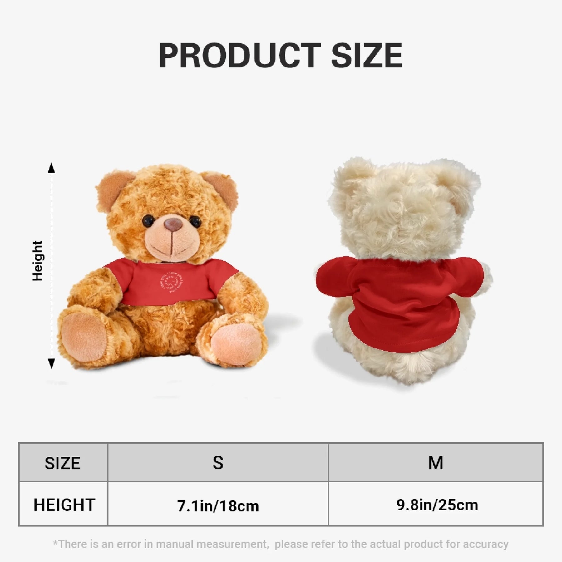 Each adorable stuffed animal features a soft t-shirt ready for your custom design. Personalize it with names, dates, short quotes, logos, or even creative extras like scrabble letter layouts, QR codes, Spotify song links, or photo prints. Choose from various font styles, text colors, and t-shirt shades to perfectly match your theme, mood, or occasion.