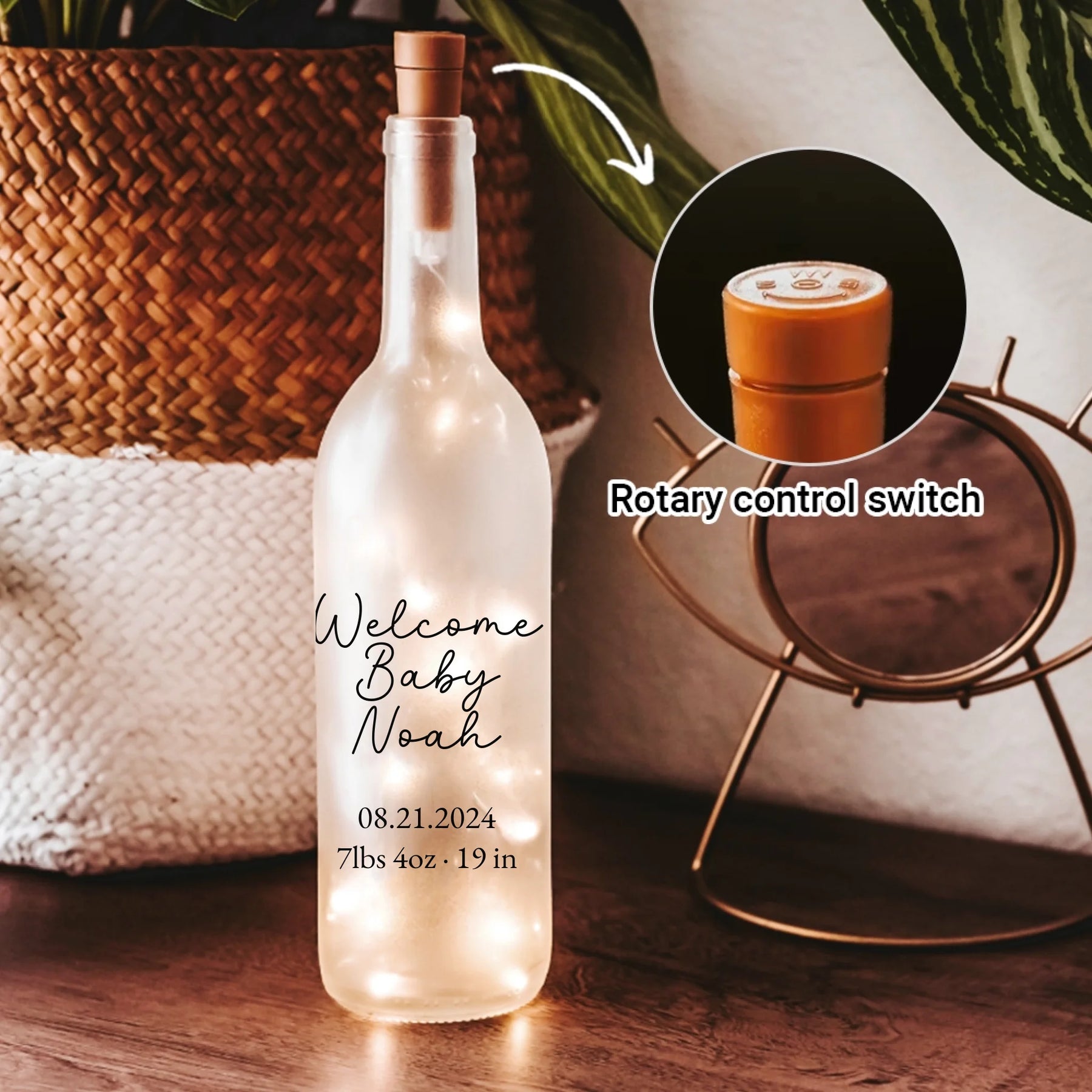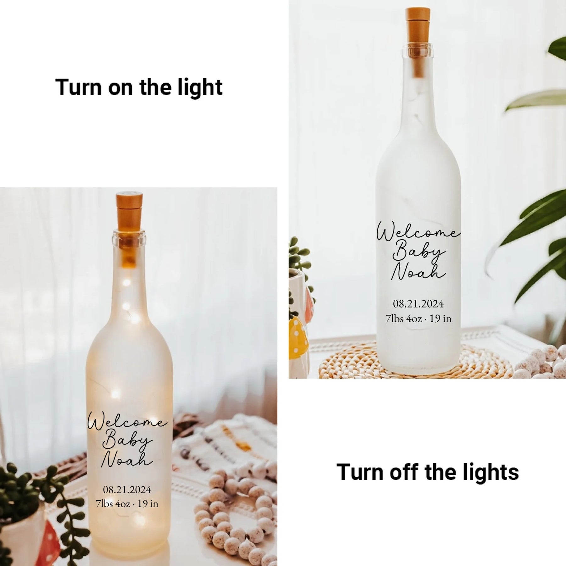 The New Baby Bottle Lamp is a heartfelt way to celebrate a child’s arrival. This 34 oz LED bottle lamp is fully customizable with your baby’s name, birth date, weight, and height. Whether you choose “Welcome Baby Noah” or a personalized birth announcement layout, every line can be tailored to create a meaningful keepsake.