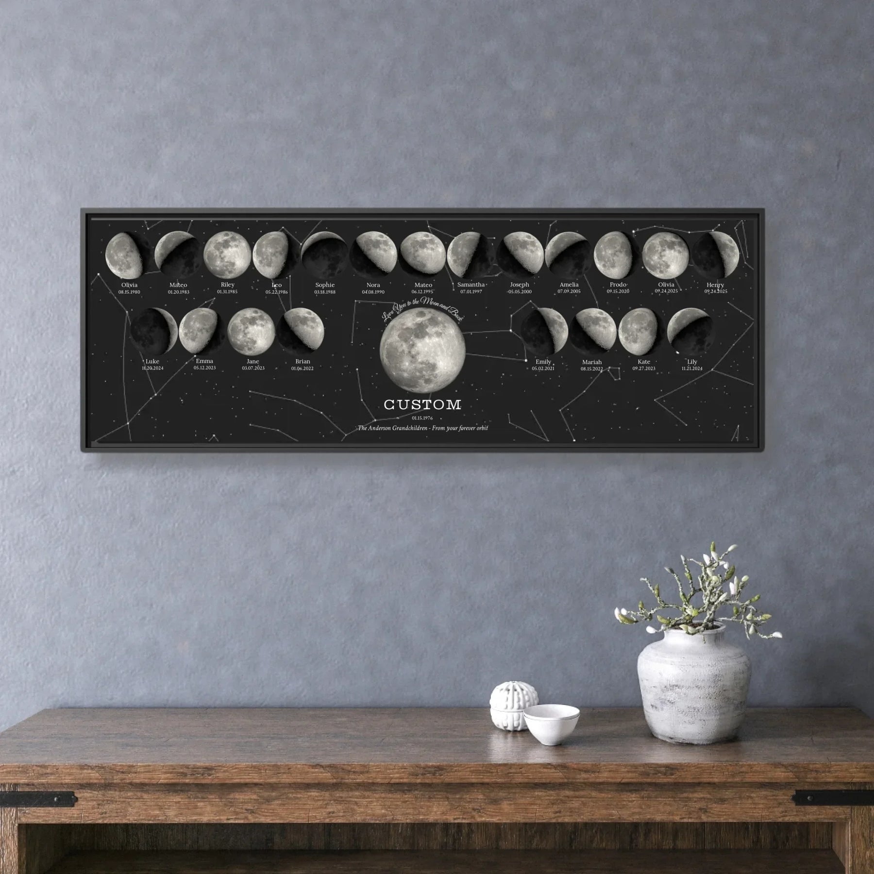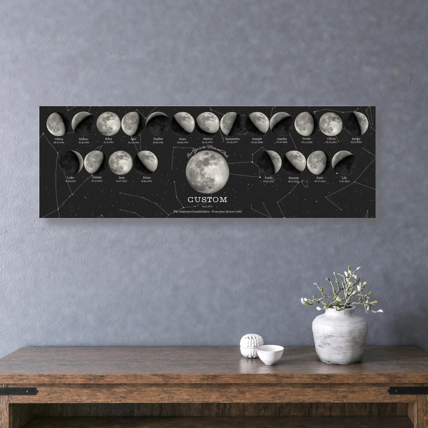Whether you’re shopping for Mother’s Day, Father’s Day, Christmas, Thanksgiving, a birthday, or a grandparent’s milestone, this moon phase family tree becomes a one-of-a-kind gift. It's a meaningful way to reflect on family connections across generations, captured in a piece that lasts a lifetime.