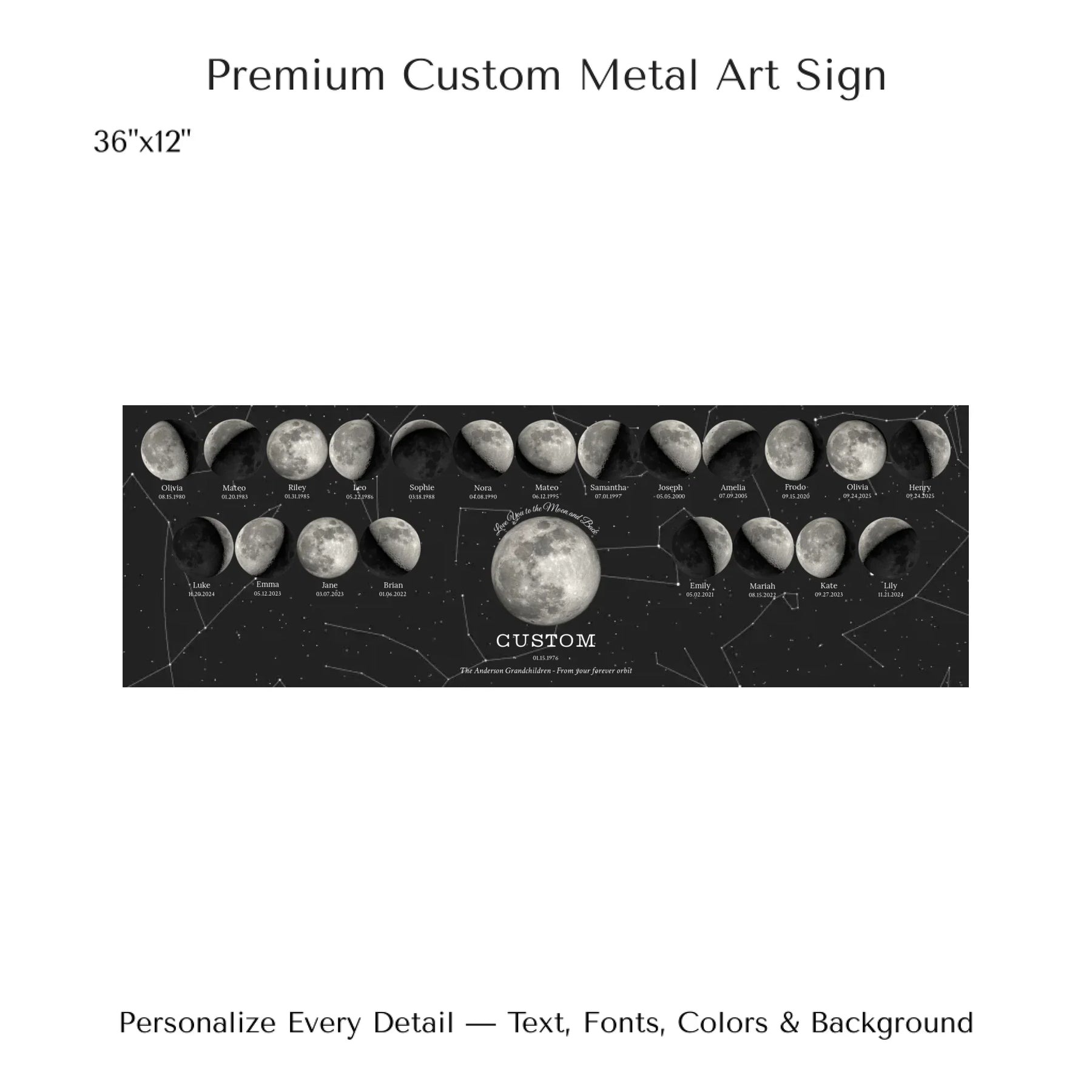 Celebrate the phases of life and family with our Custom Family Silver Moon Phase Wall Art. This unique, heirloom-quality piece is designed to honor parents or grandparents with a celestial tribute that’s both modern and meaningful.