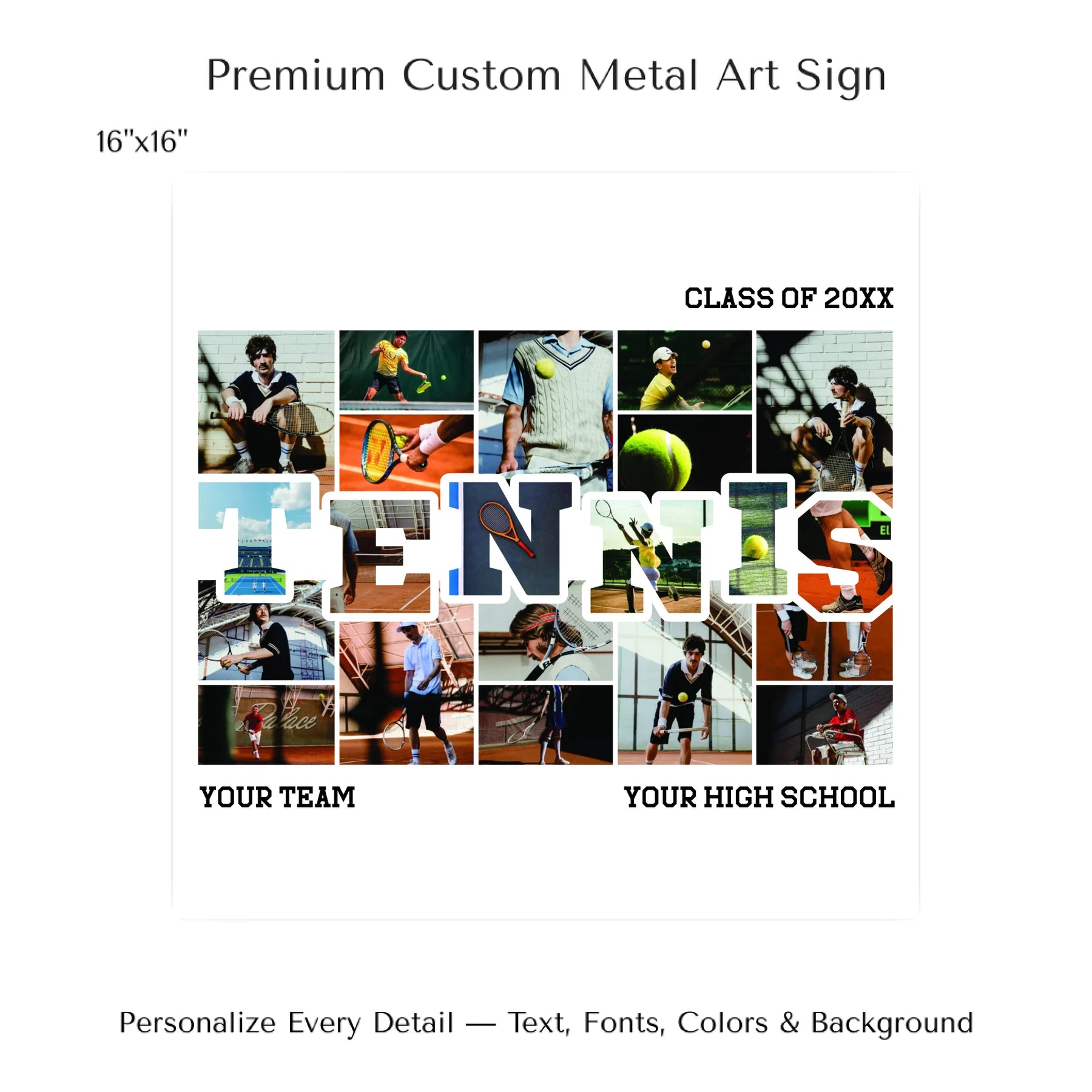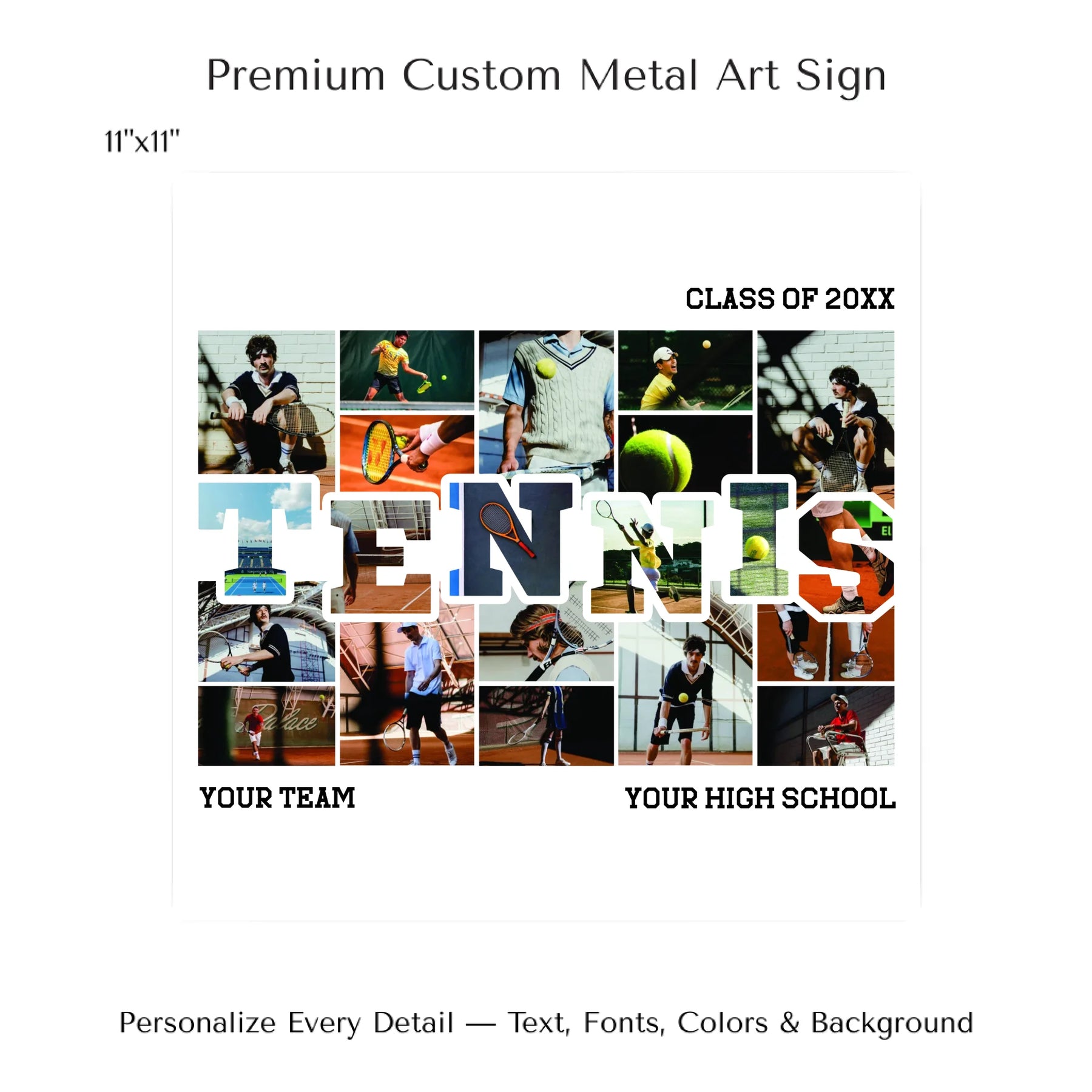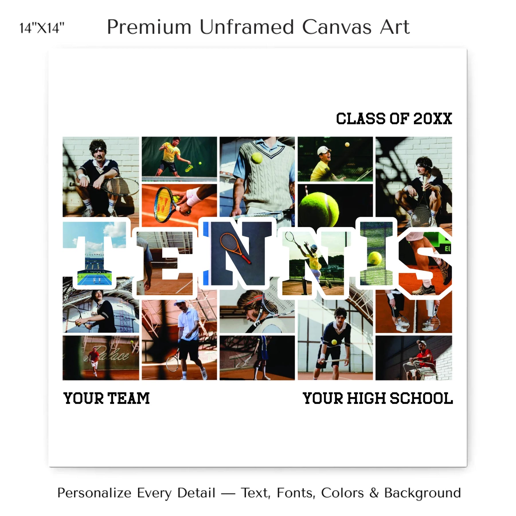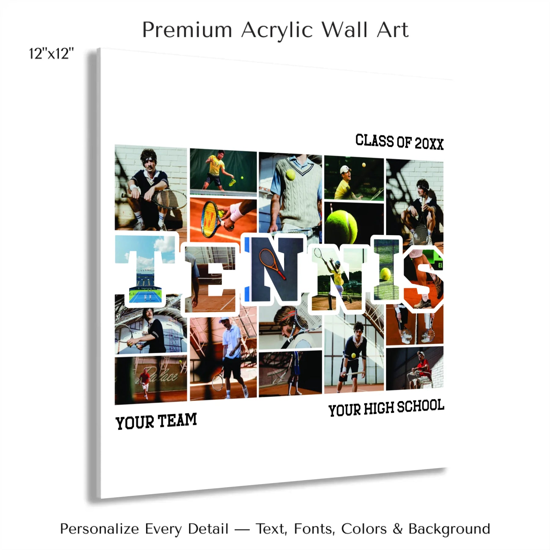 Select photos inside the word TENNIS for a fully personalized appearance.