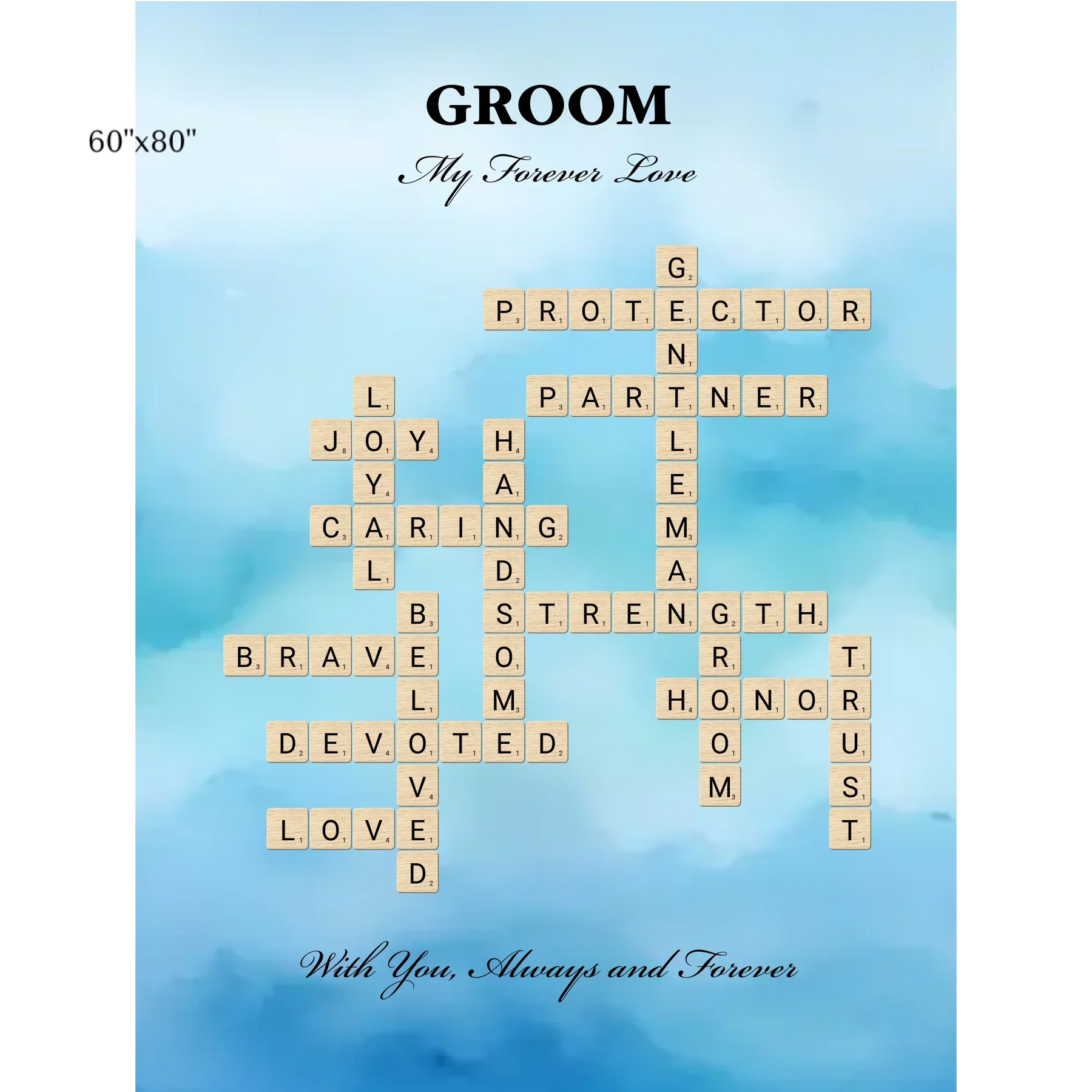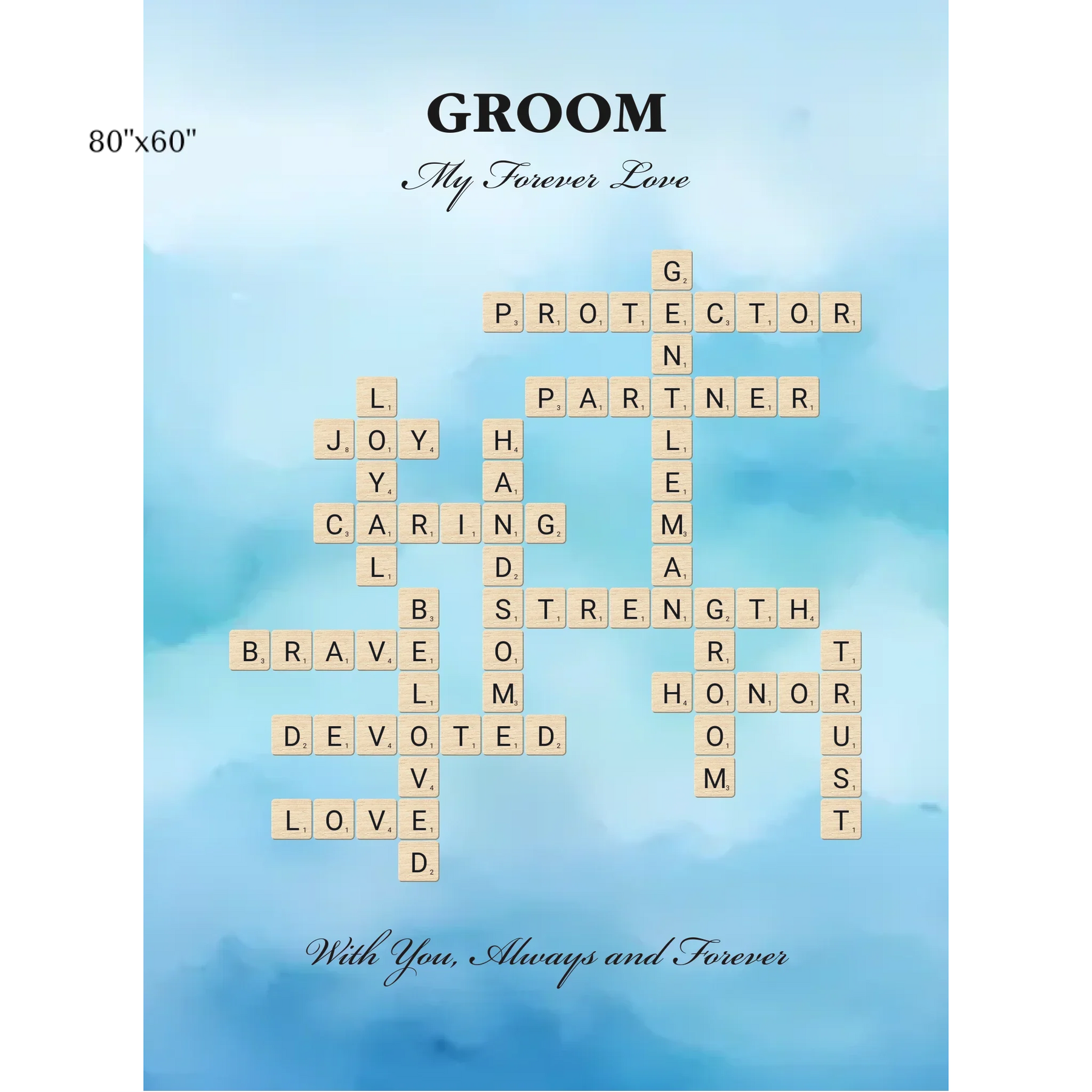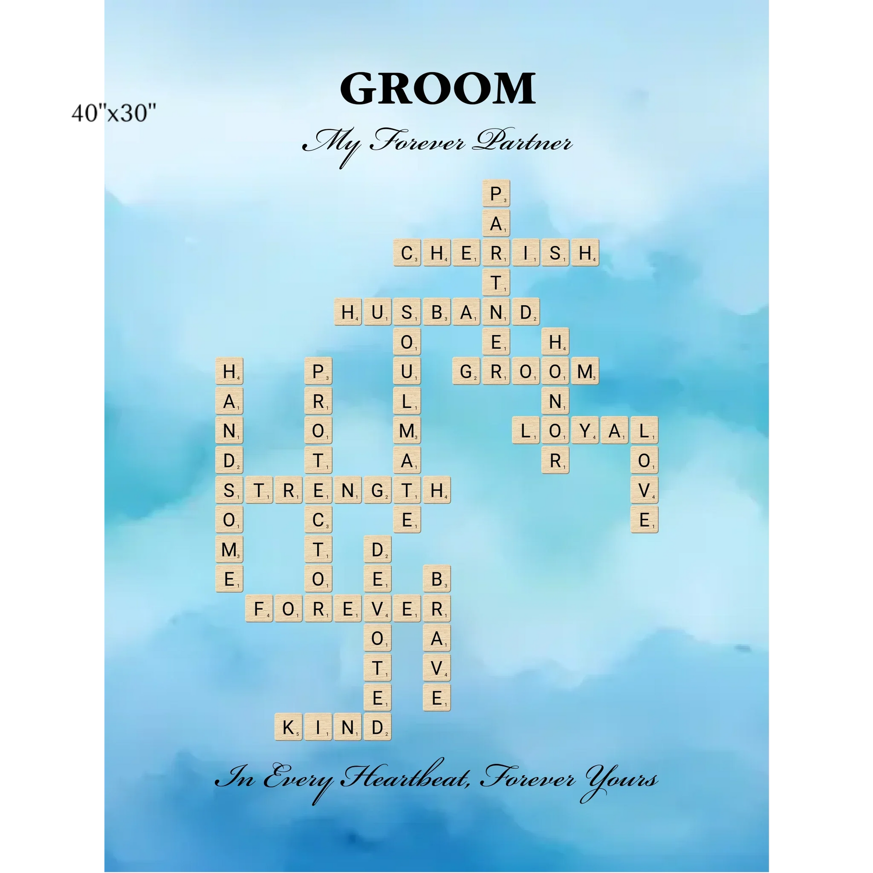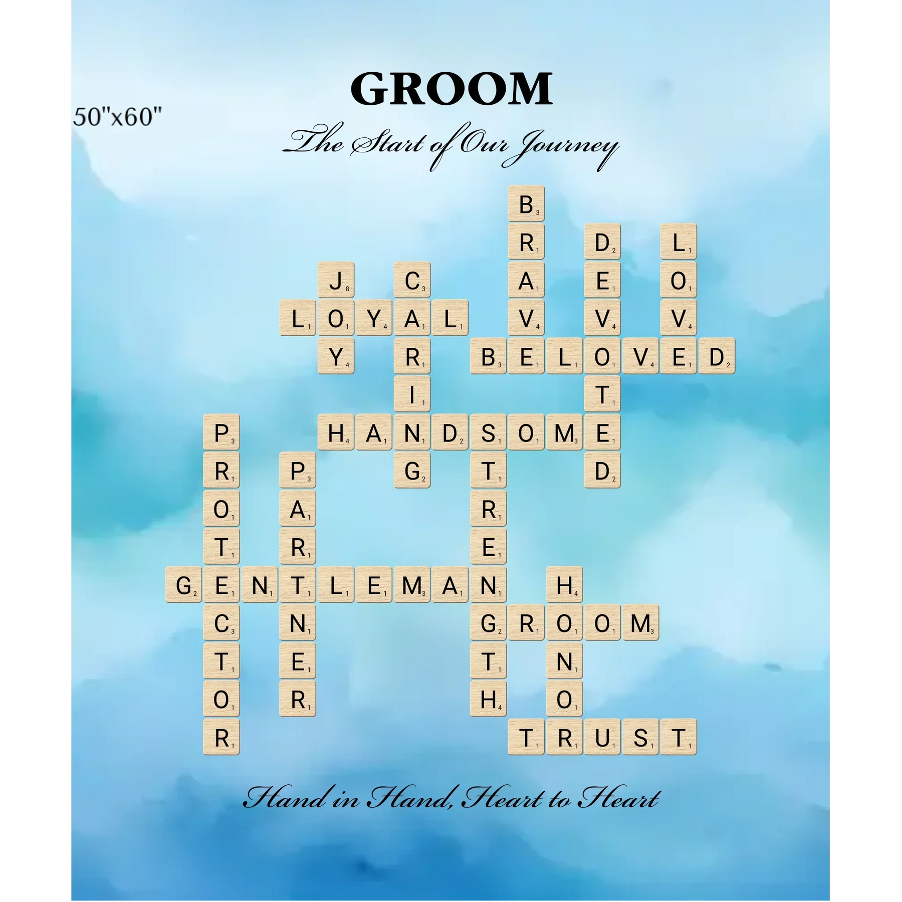 • 2 opciones de diseño: Palabras seleccionadas para el novio o crea tu propio arte de palabras