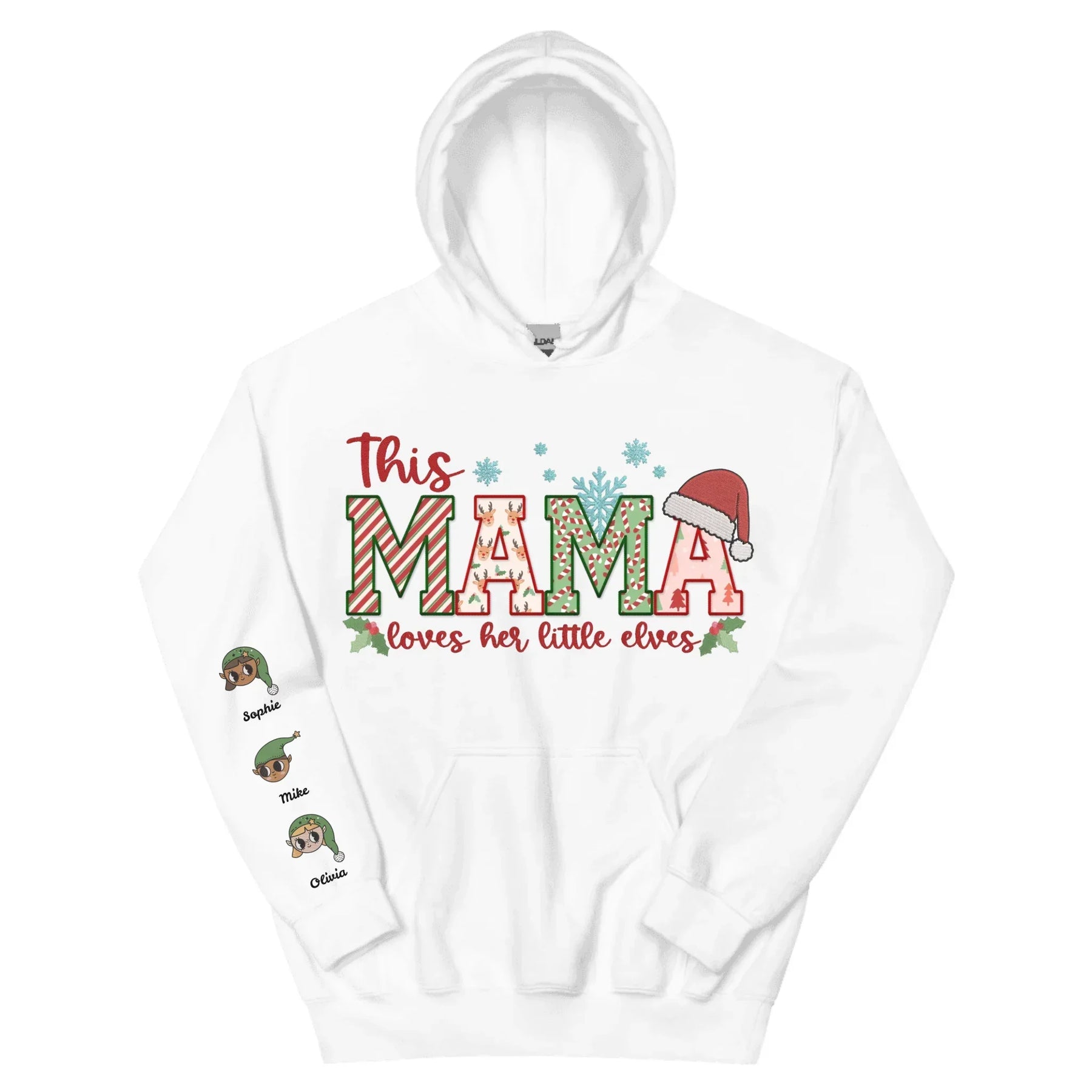 Each Mama Elves Sweatshirt uses premium Gildan unisex adult sweatshirts and hoodies for comfort and durability. The artwork features bright holiday colors and clean detailing to create a cheerful seasonal look. Every personalized order is crafted with care to make your sweatshirt feel special and festive.