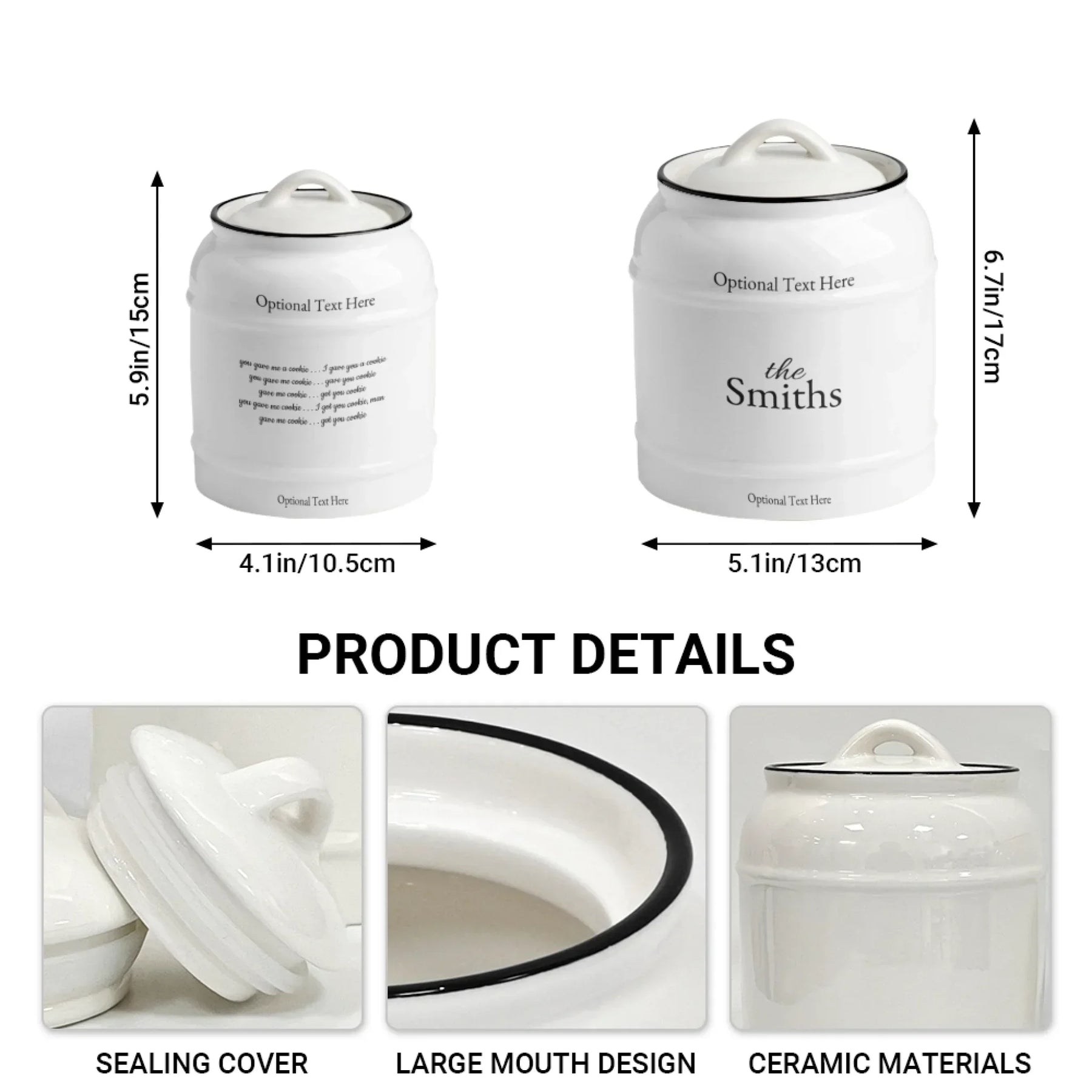 The ceramic jar is crafted from premium materials with a smooth, bright surface. The finish supports crisp printing and clear text. The design stands out beautifully against the white ceramic background. It blends seamlessly into farmhouse kitchens, contemporary homes, or classic spaces. This jar works as both a functional storage container and a decorative keepsake.