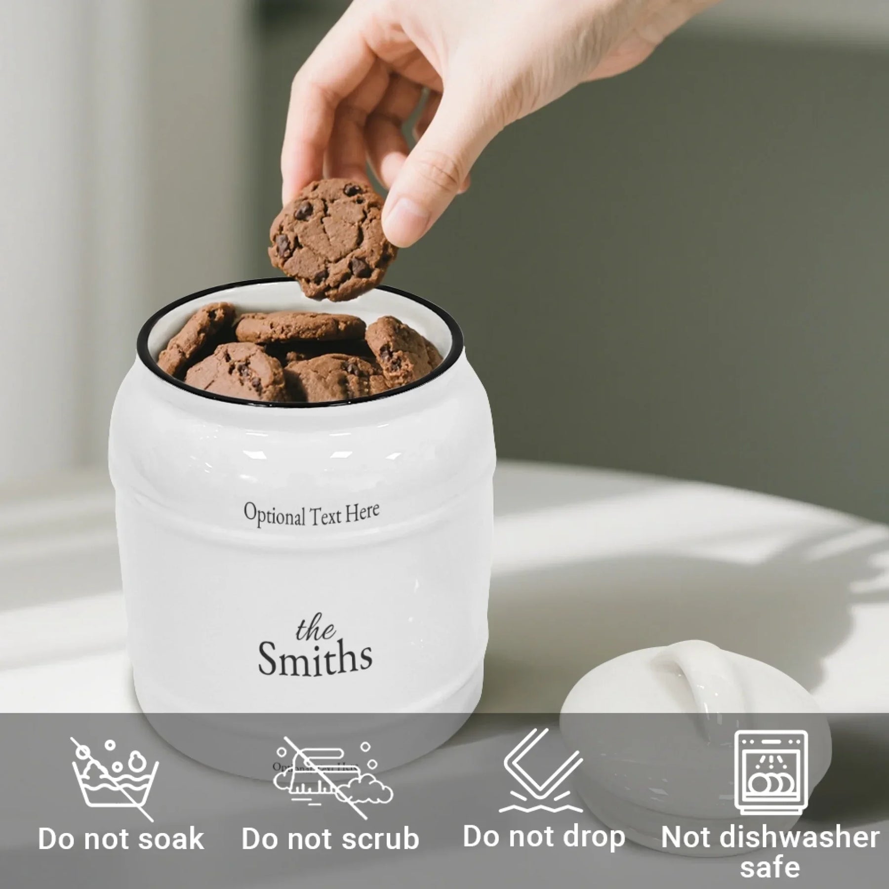 This cookie jar brings love, tradition, and style into your home. It celebrates stories, memories, and the people who make life meaningful. With its customizable paragraph feature and classic serif name design, it becomes a treasured piece for any family.