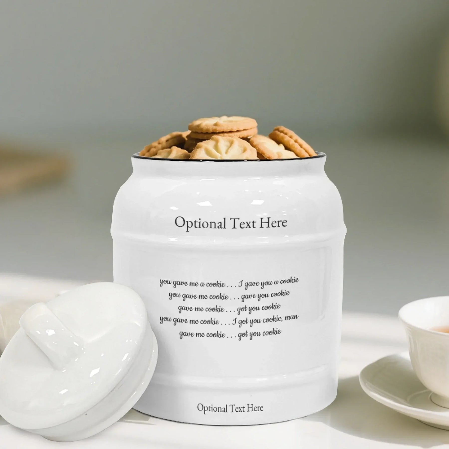 Honor your family’s story with this Custom Paragraph Text Ceramic Cookie Jar. It is a heartfelt keepsake and a beautiful addition to any home.